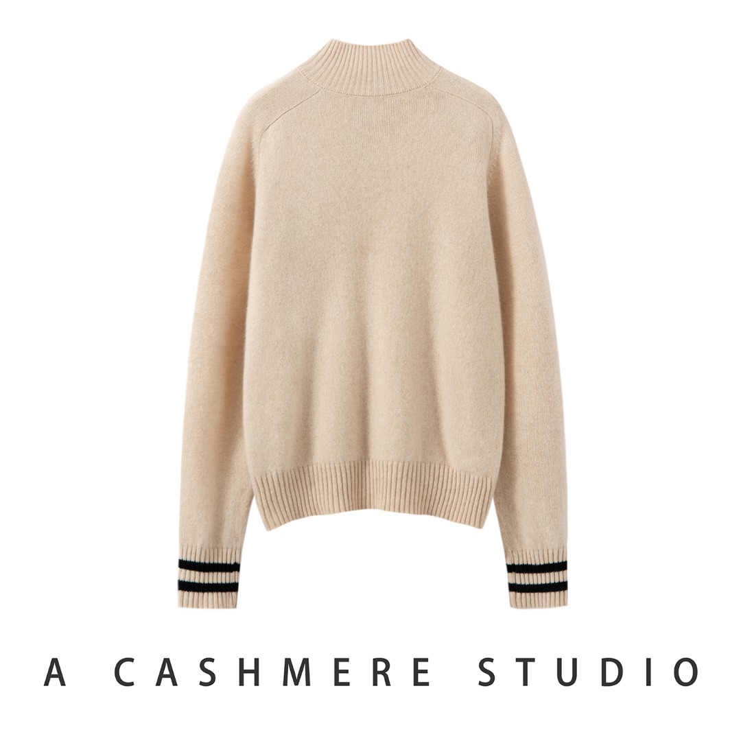 半拉链加厚麻花 100%山羊绒女长袖半高领套头秋冬毛衣打底针织衫