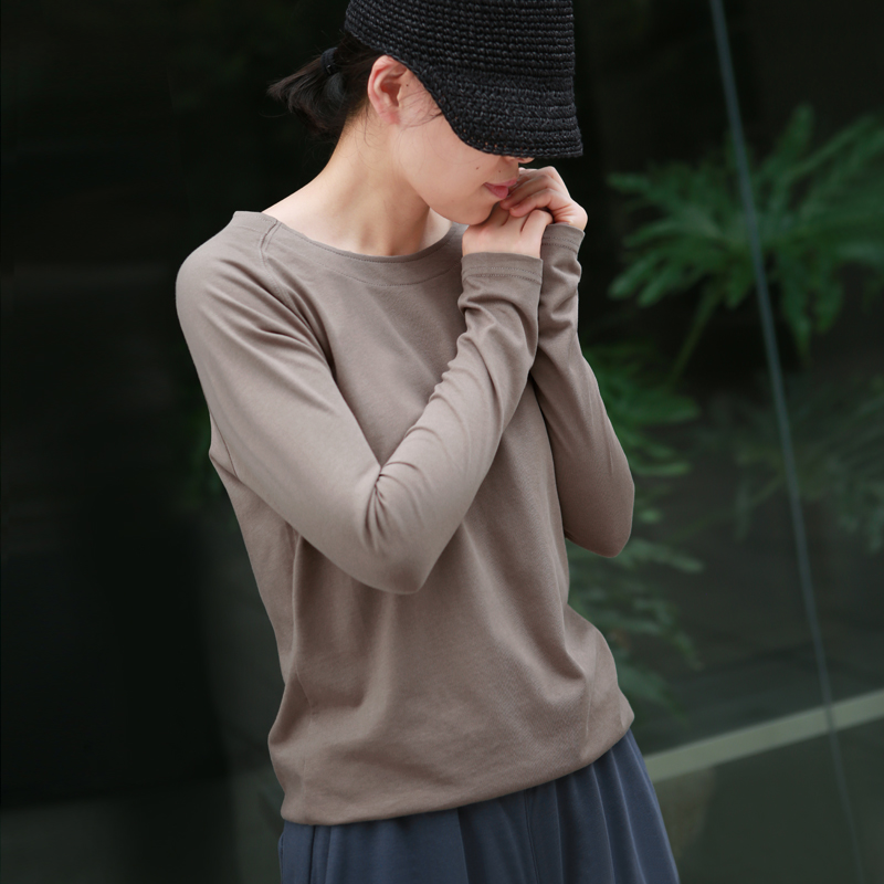 帛色2025秋款纯色长袖T恤衫女新疆长绒棉针织打底衫圆领内搭上衣