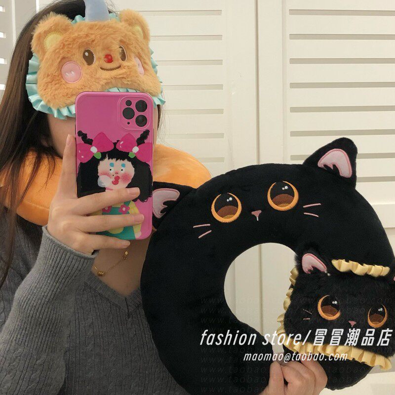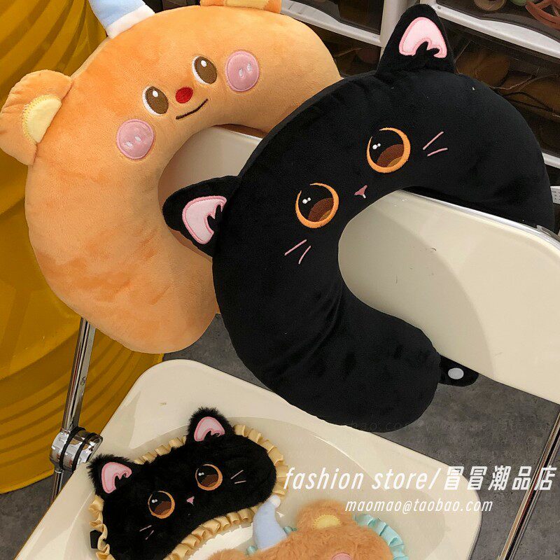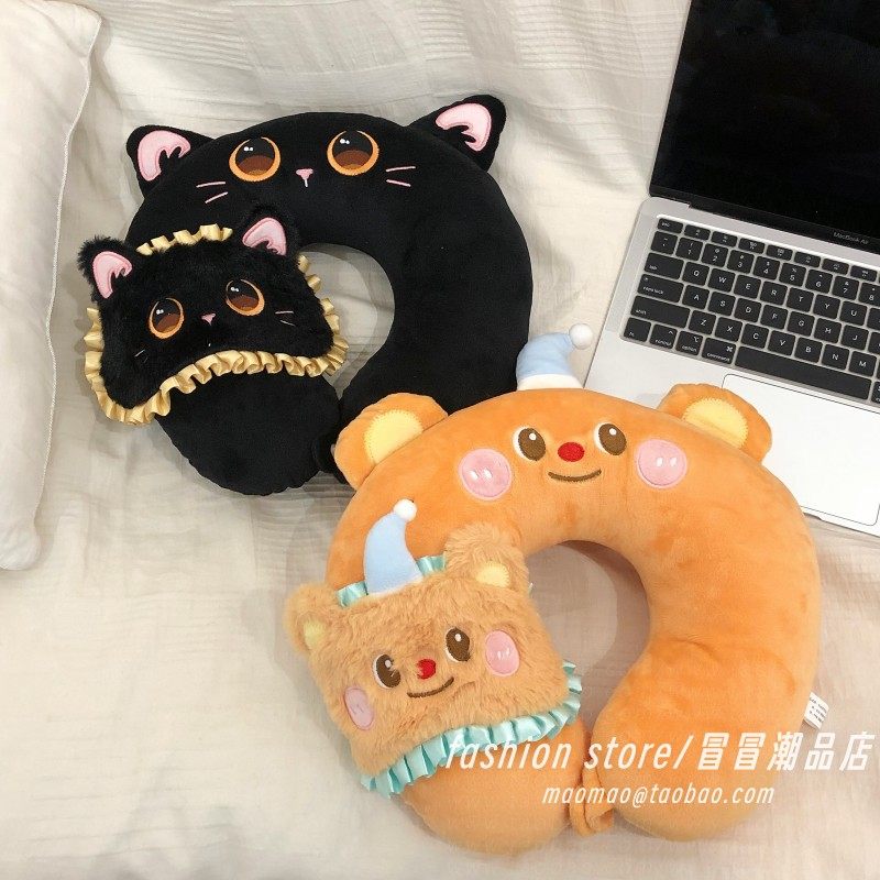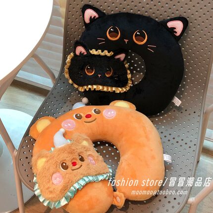 卡通黄油小熊护颈u型枕飞机高铁旅行睡觉神器便携pp棉u型枕头枕女