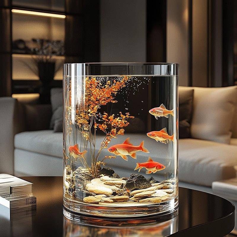 塑料鱼缸桌面客厅小型透明防摔亚克力圆形圆柱形高透超白仿玻璃