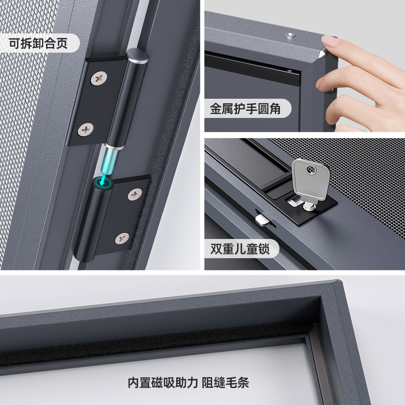 口袋锁纱窗定制上门安装平开窗铝合金窗纱防盗金刚网纱网自装纱窗