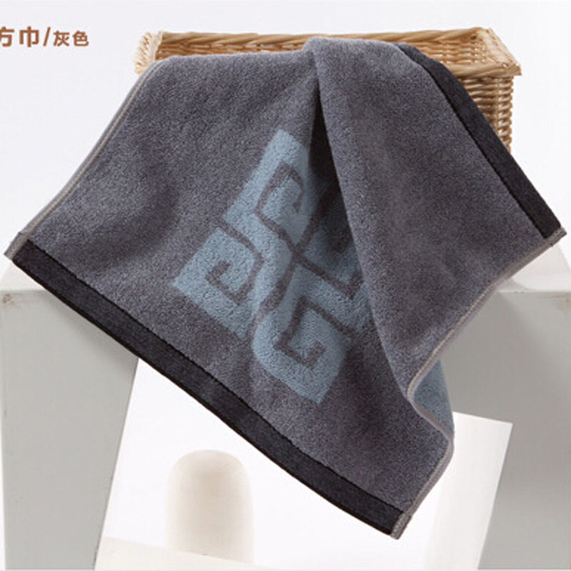 金号纯棉方巾 全棉提缎加厚吸水回字图案 高档情侣方巾