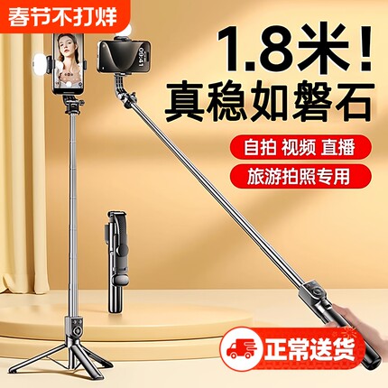 2025新款手机自拍杆落地三脚架手持拍照神器360度旋转便携旅游蓝牙遥控自拍直播拍摄支架外出通用三角架伸缩