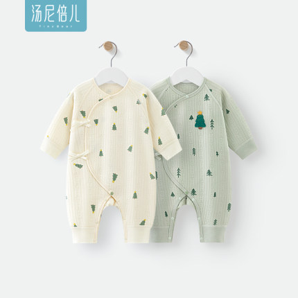 汤尼倍儿新生儿夹棉连体衣秋冬季保暖内衣宝宝哈衣婴儿系带和尚服