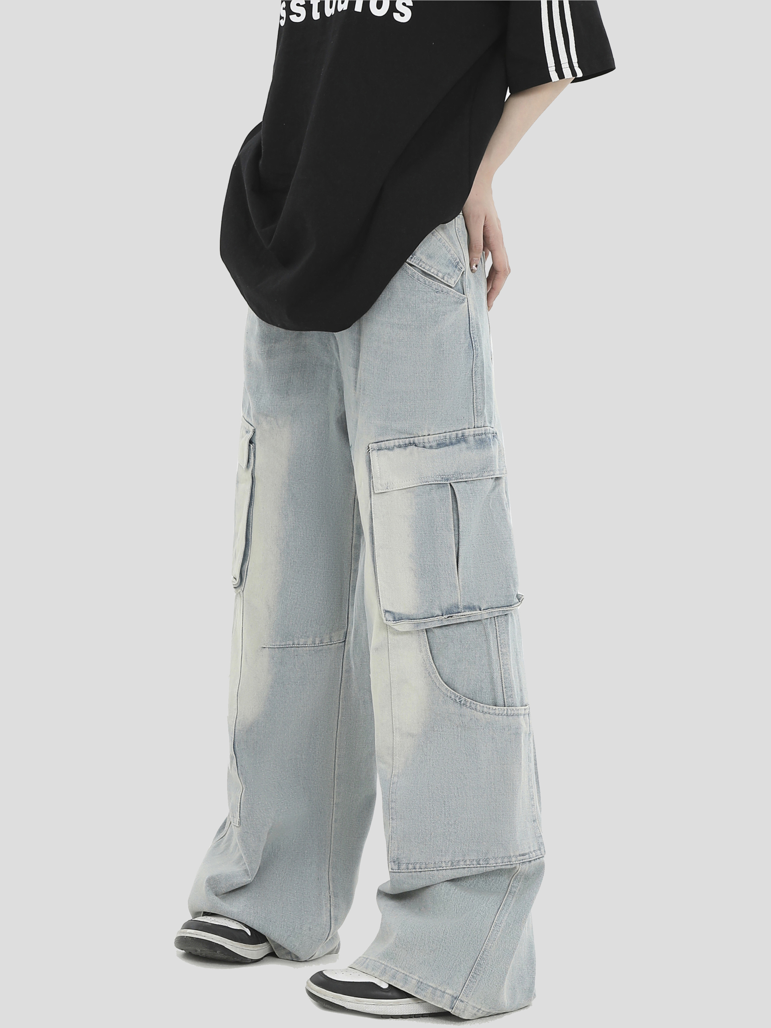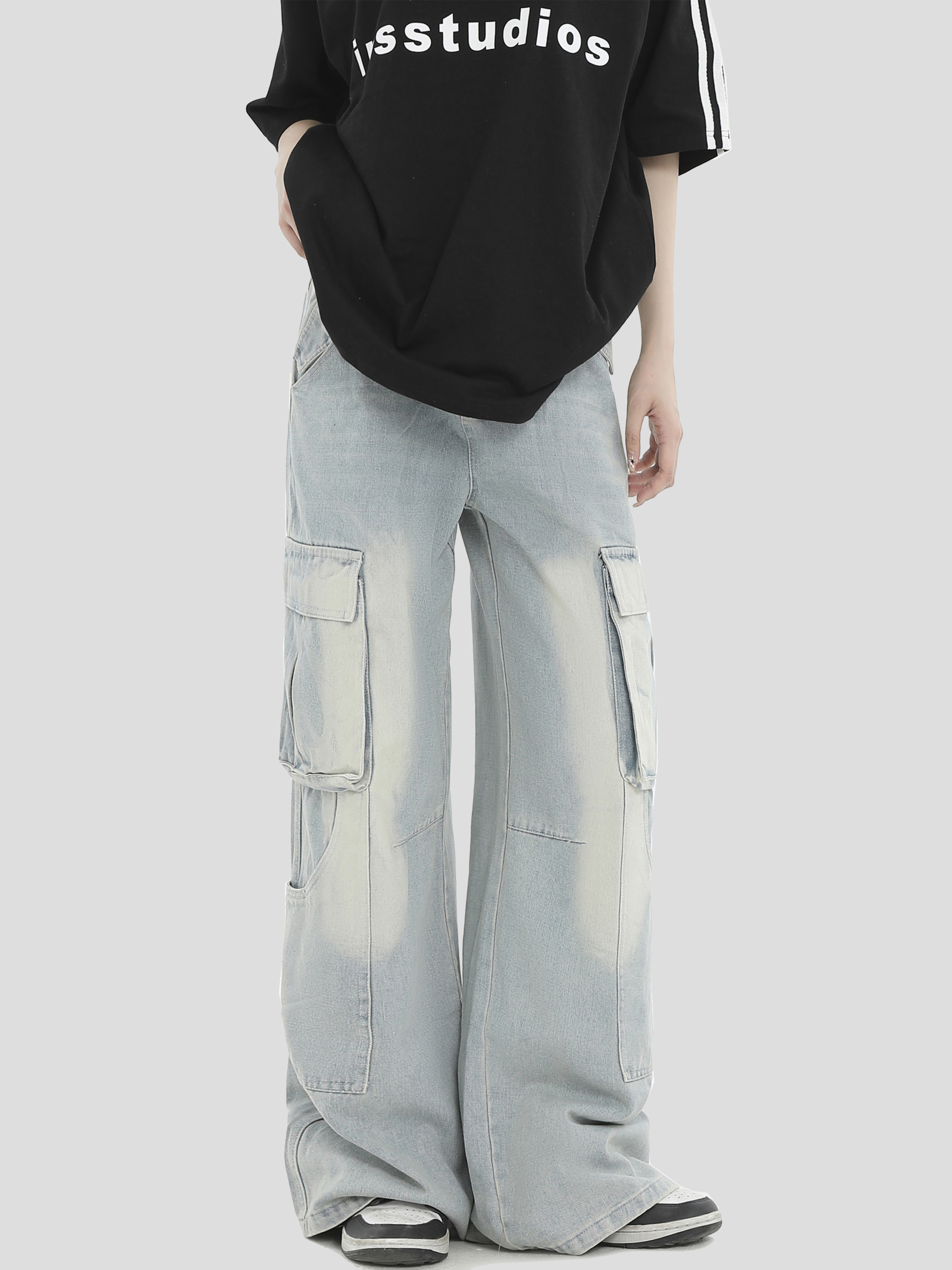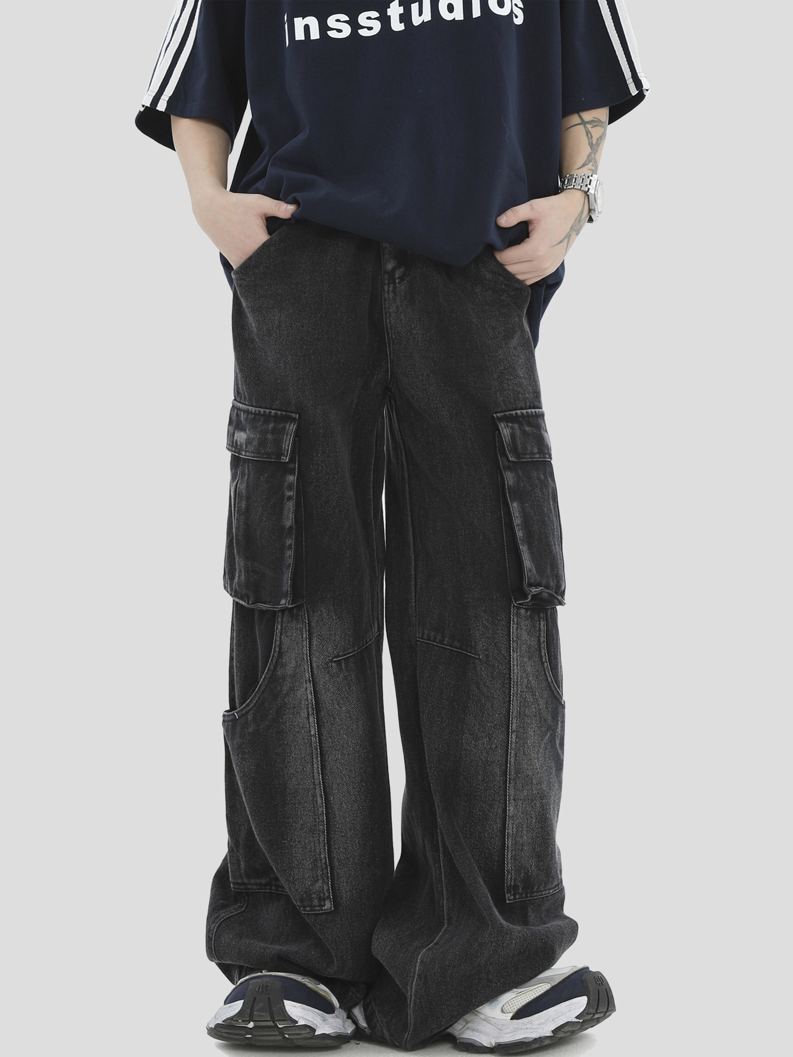 INSstudios做旧水洗工装牛仔裤