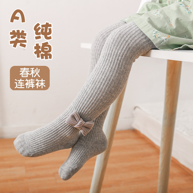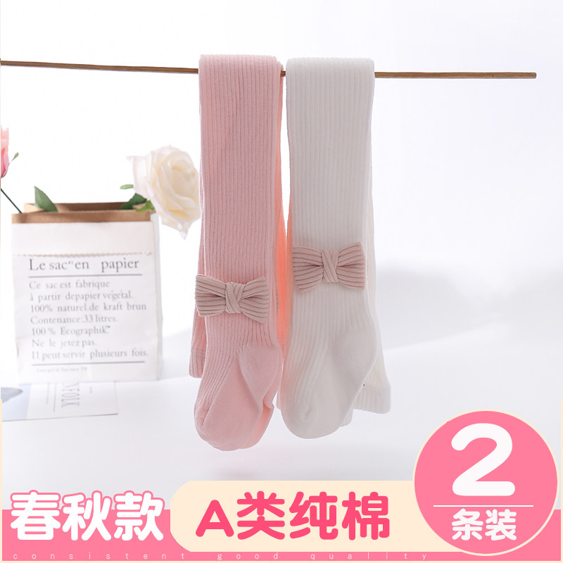 宝宝连裤袜春秋纯棉中厚薄款儿童女春季连体袜大pp白色婴儿打底裤