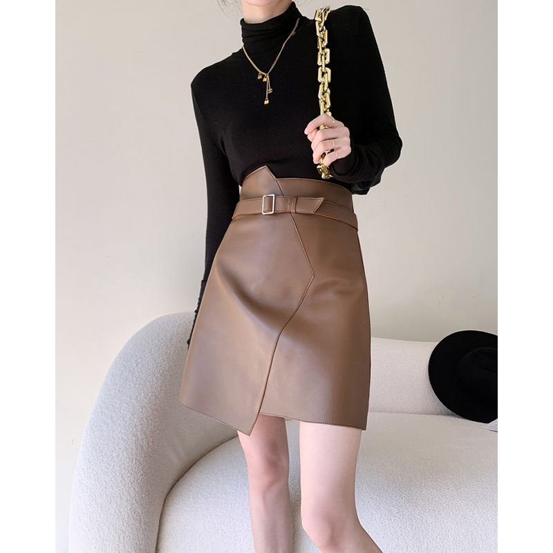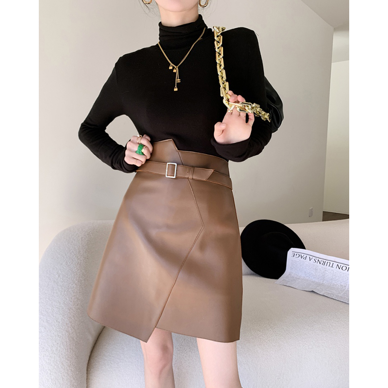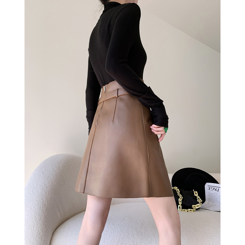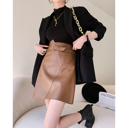 真皮皮裙绵羊皮高级时尚显瘦A字裙包臀高腰半身裙秋新款女B1908