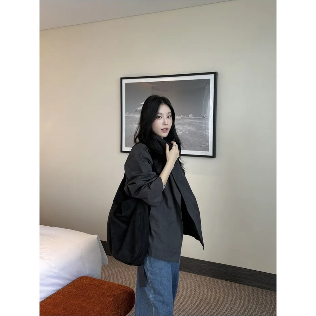 chic 韩版秋冬简约感英伦风立领宽松系带百搭短款风衣外套