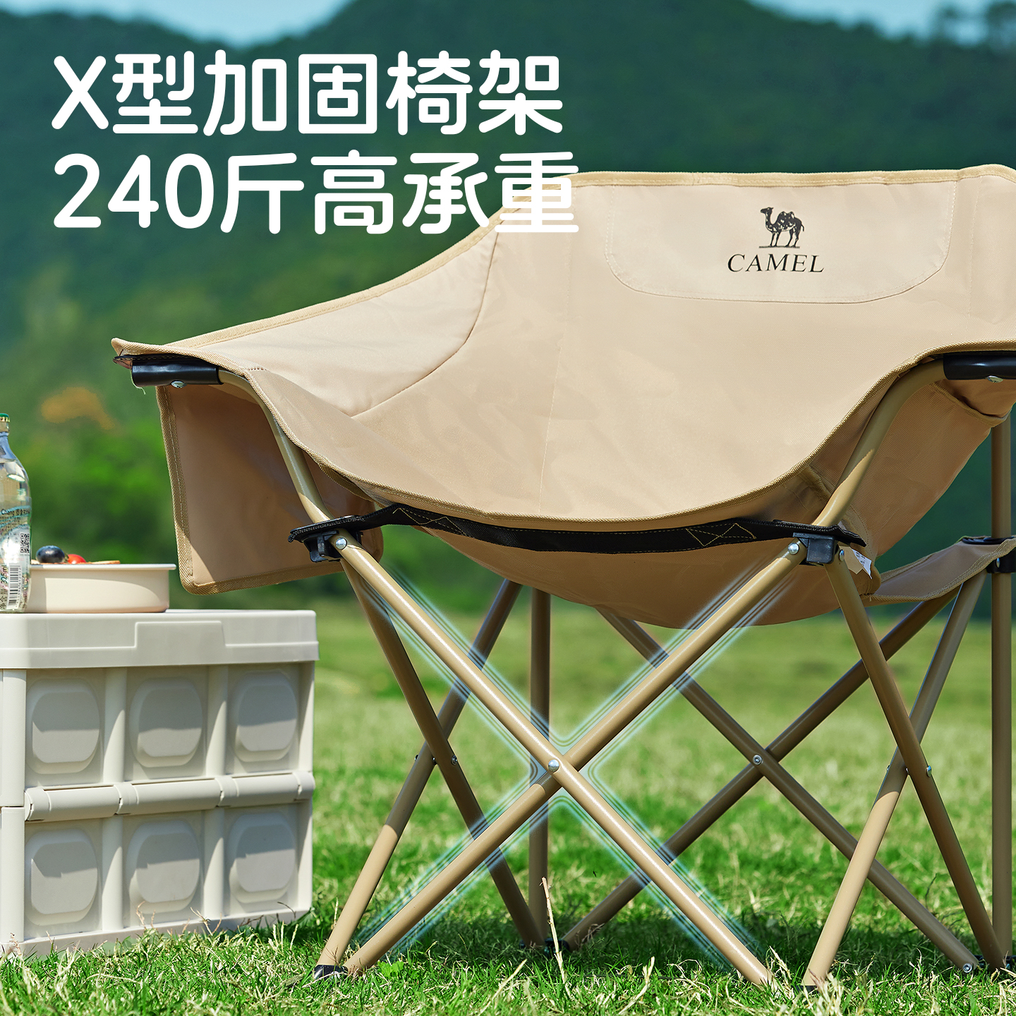 骆驼户外露营椅钓鱼凳子沙滩躺椅月亮椅带扶手折叠凳野营装备桌椅