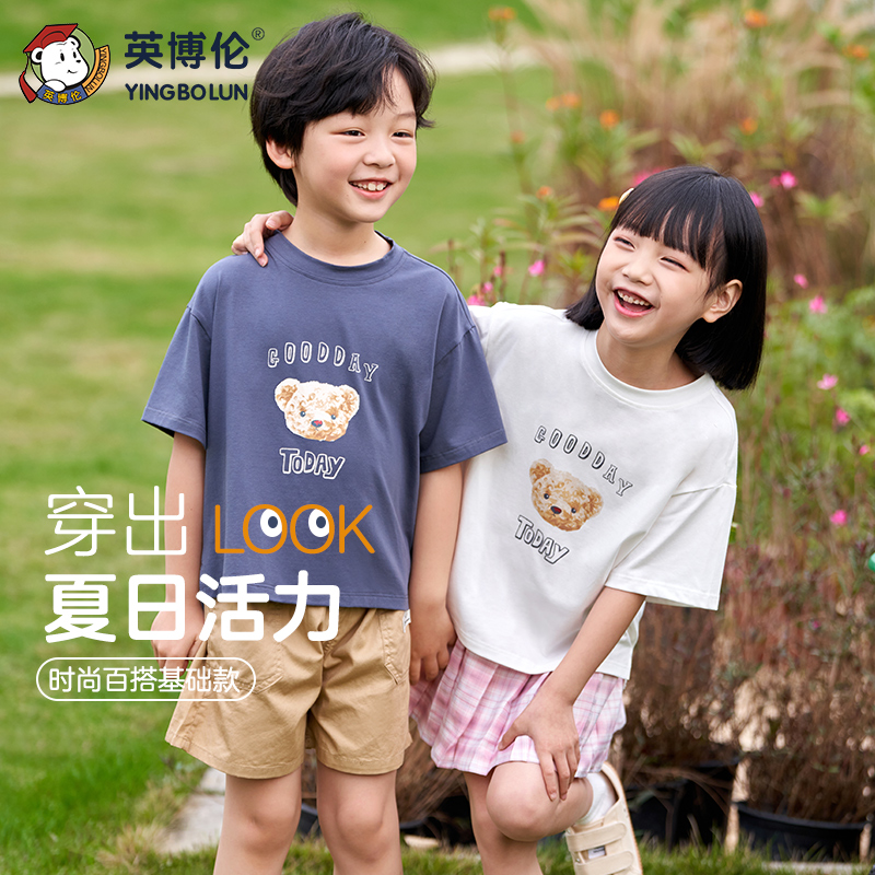 【断码清仓】英博伦童装儿童短袖男童夏上衣女童纯棉T恤春夏季薄