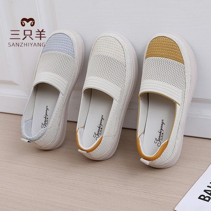 三只羊妈妈鞋一脚蹬透气镂空春夏