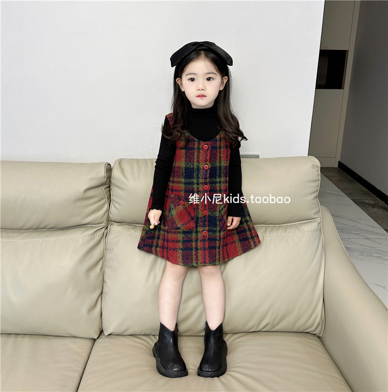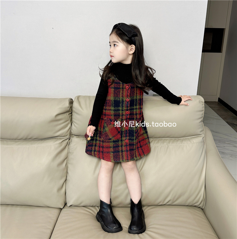 韩国版2025秋冬新款女童格纹毛呢背心裙女宝宝气质甜美可爱连衣裙