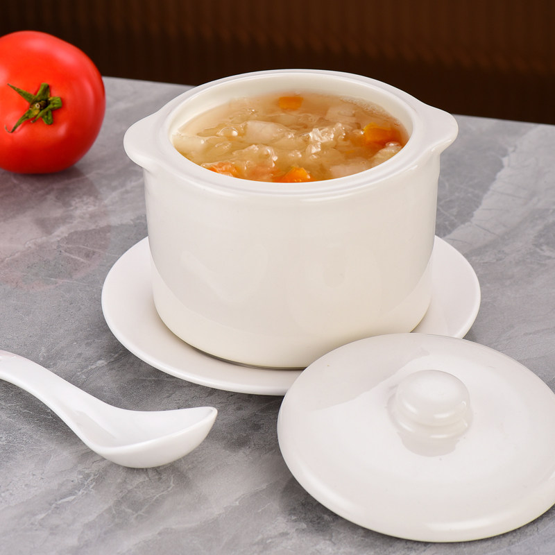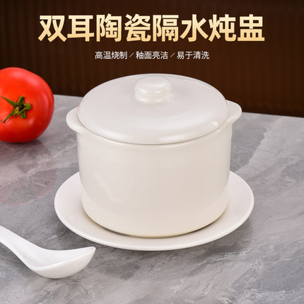双耳陶瓷隔水炖盅炖粥盅煲汤碗烤梨家用商用带盖汤煲耐高温蒸燕窝
