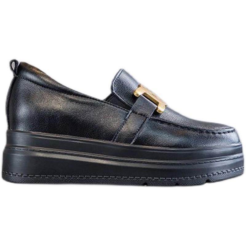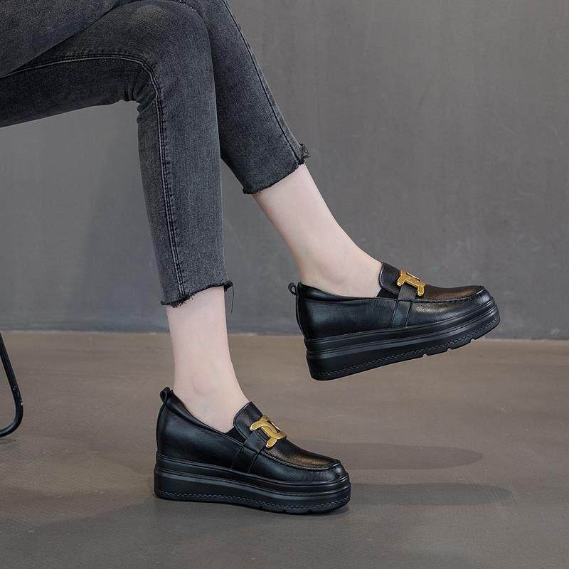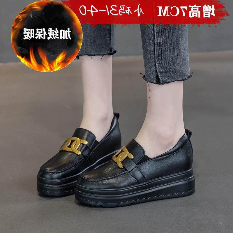 香港内增高女鞋乐福鞋真皮厚底运动休闲单鞋显瘦百搭小黑鞋小码秋