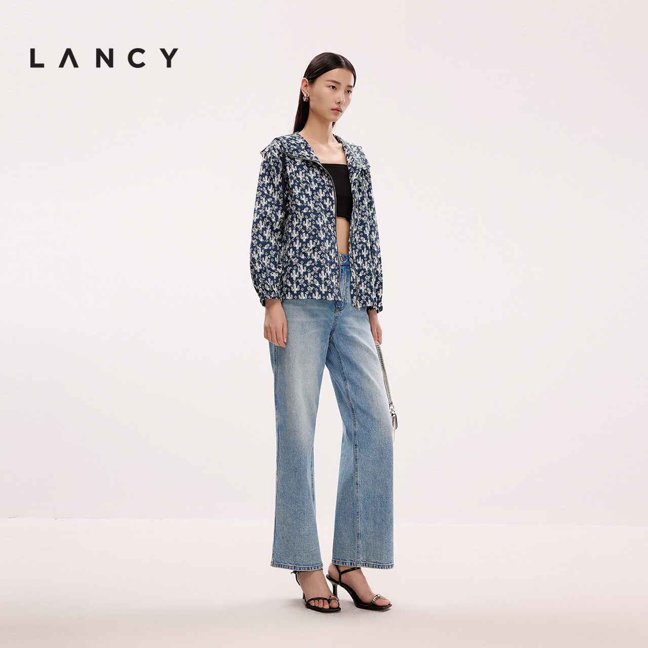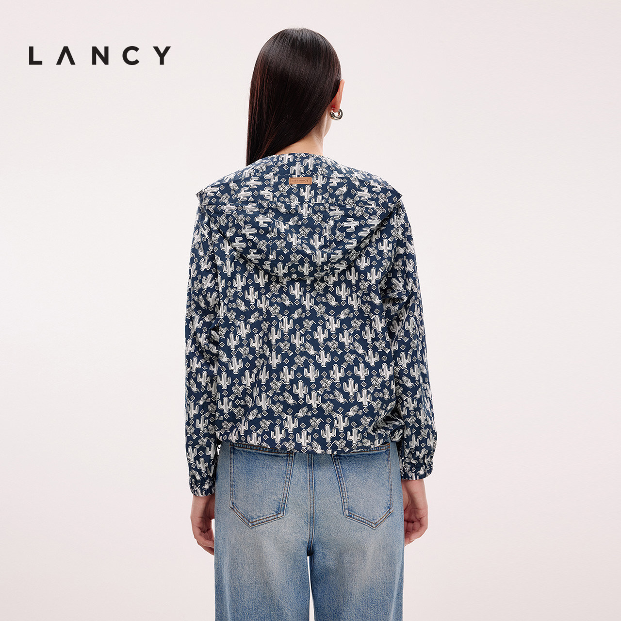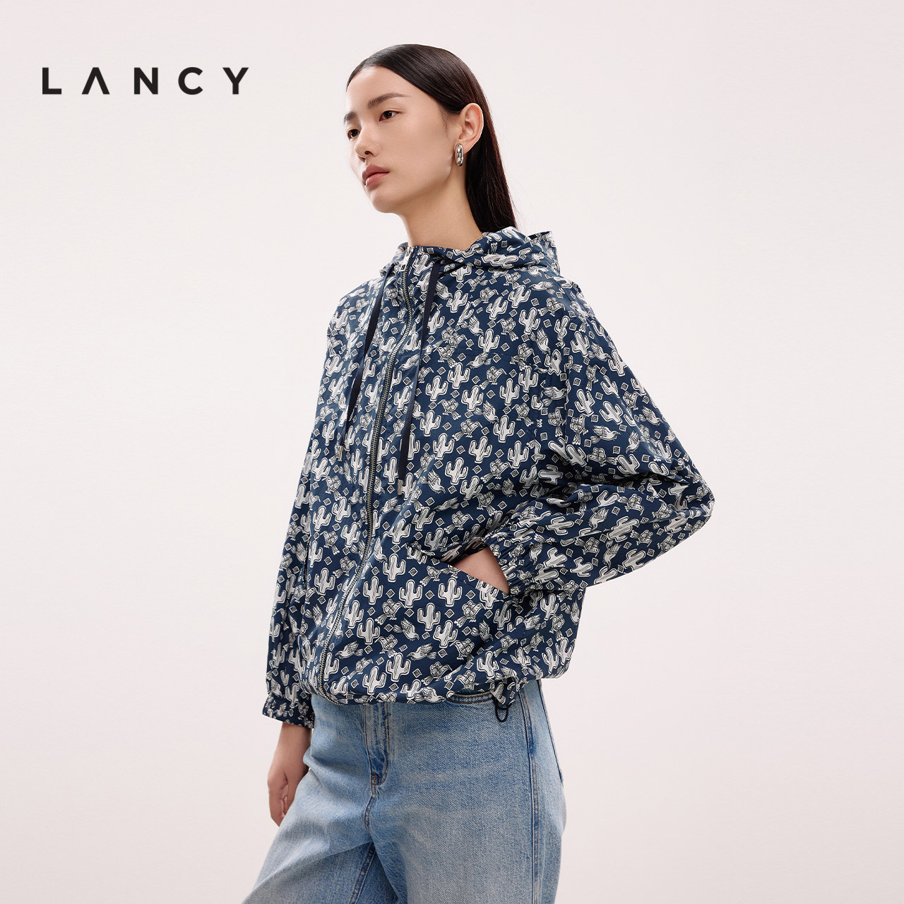 LANCY/朗姿2025春新款休闲连帽夹克法式印花高端时尚短款外套女