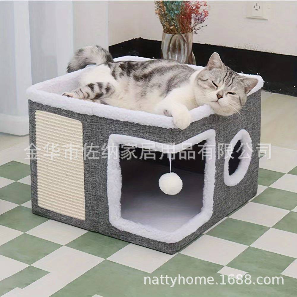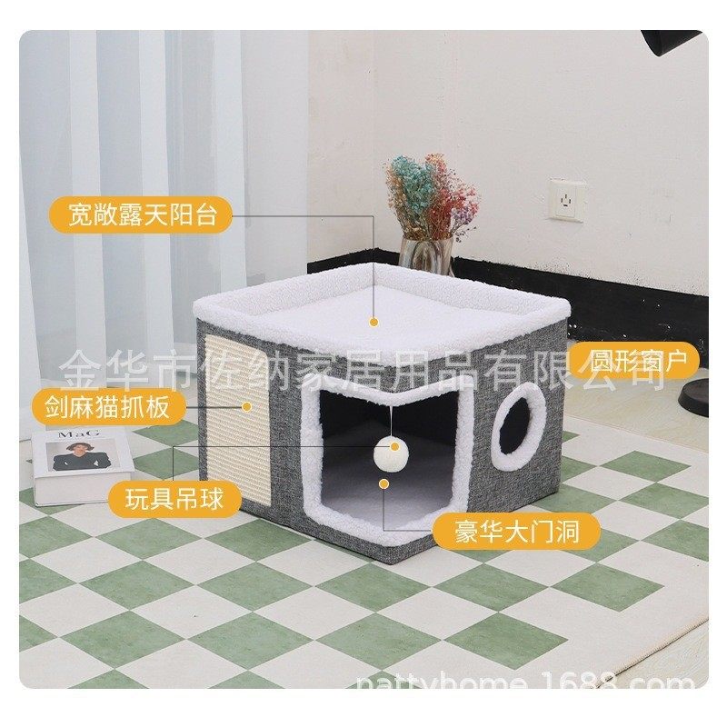 宠物大房子猫窝别墅可收纳折叠剑麻猫别墅大号场景猫双层新品
