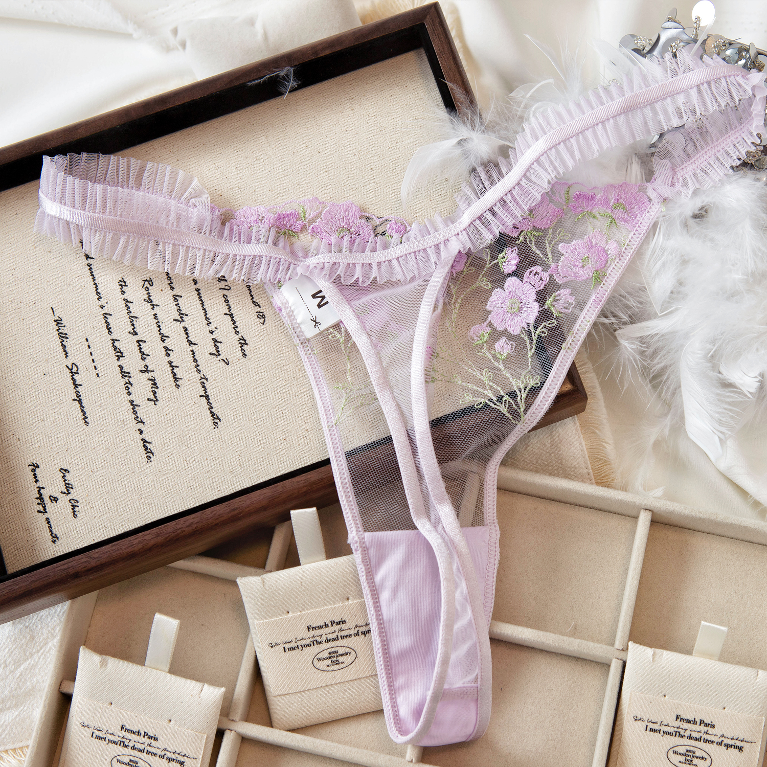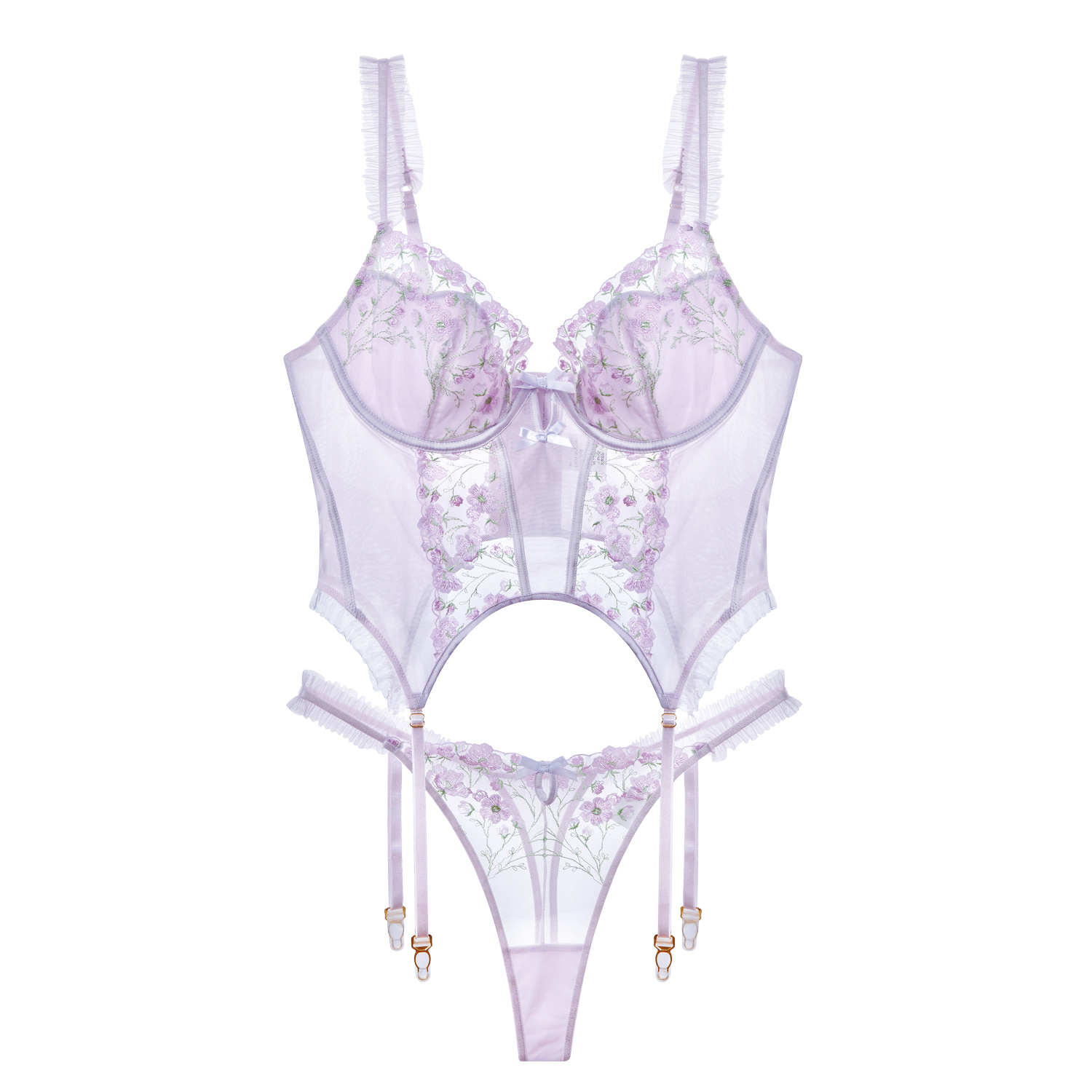 【芭蕾舞曲】刺绣性感网纱蕾丝聚拢鱼骨胸内衣文胸套装