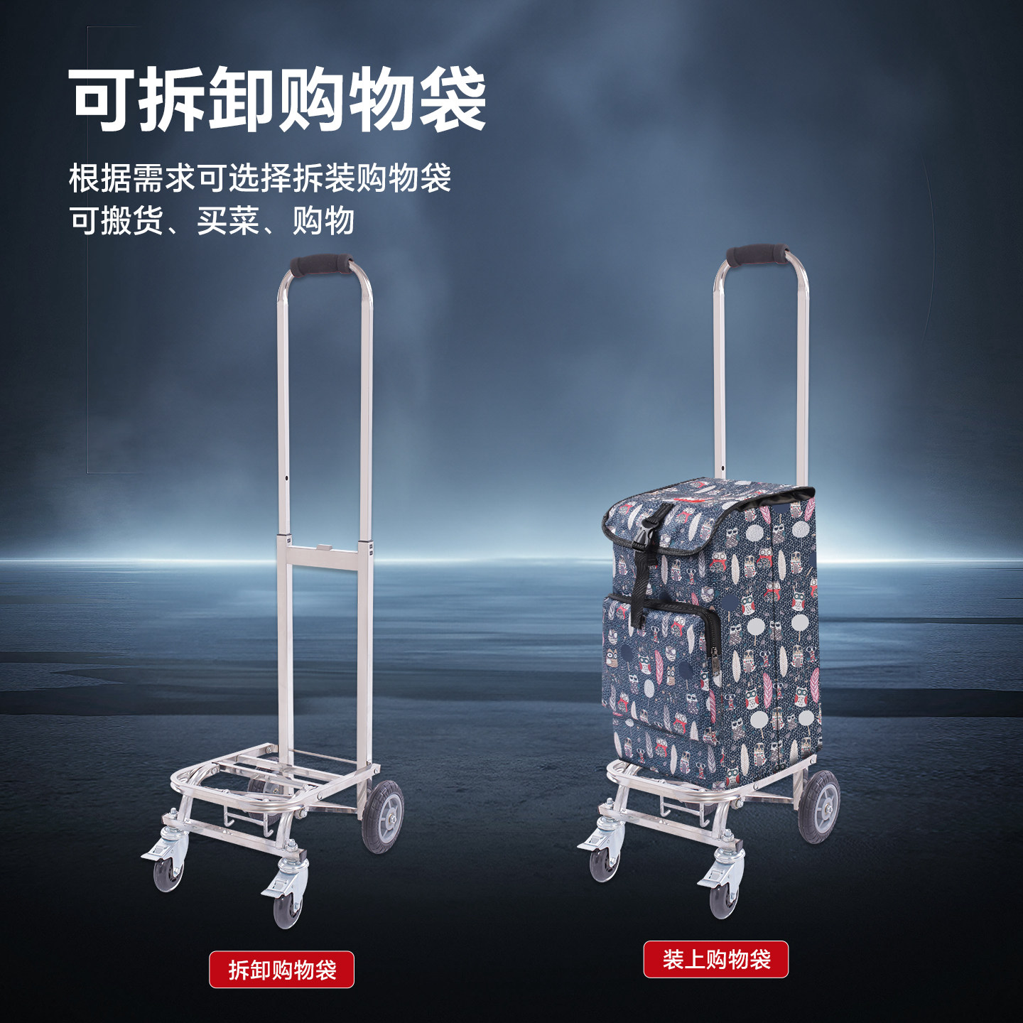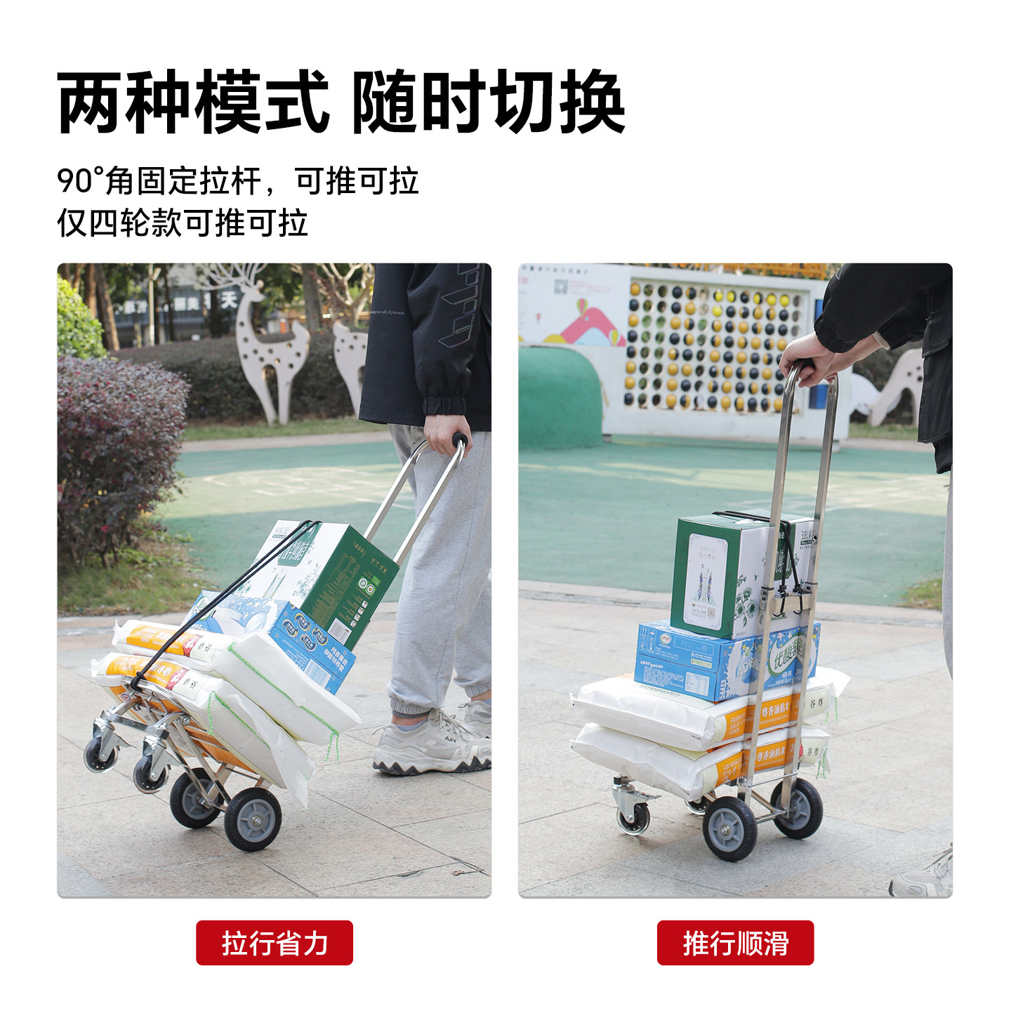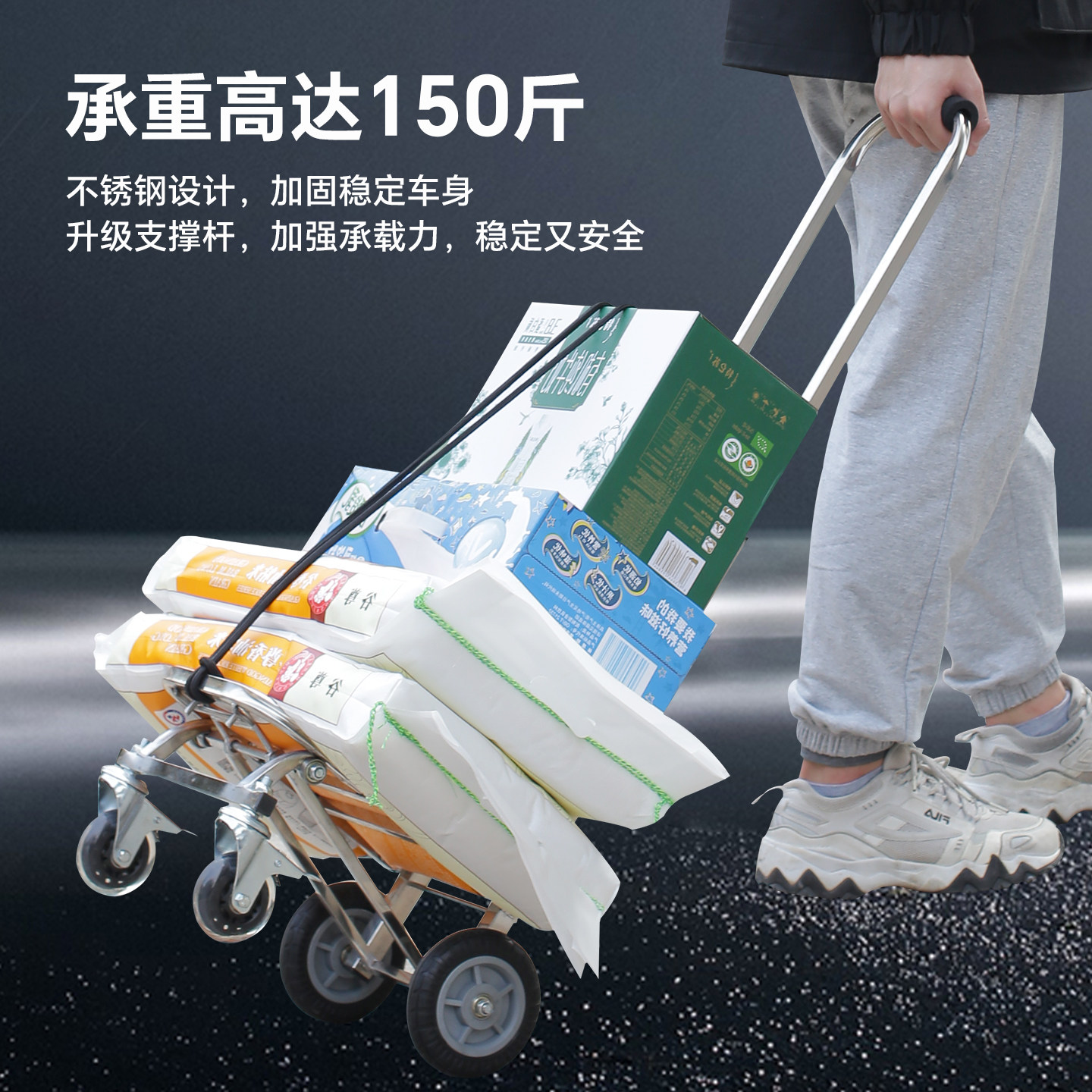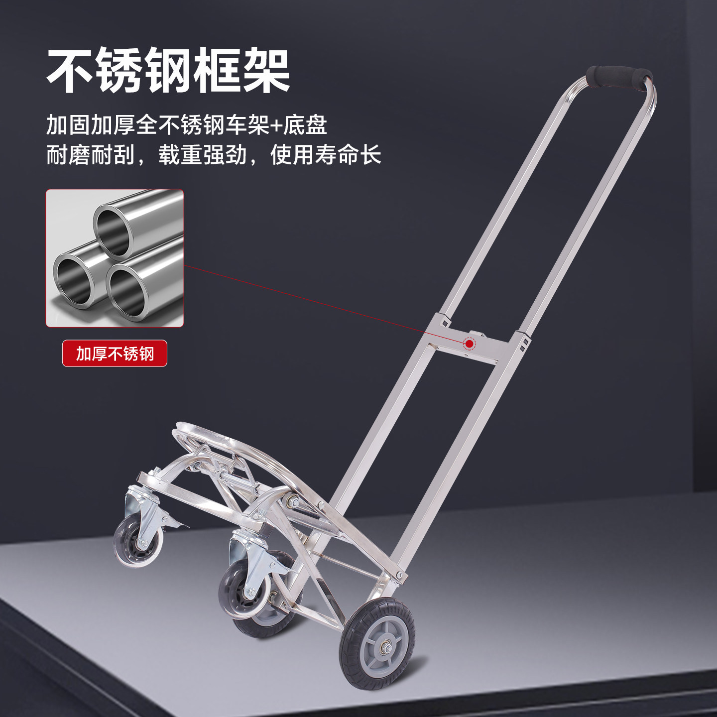 匠者购物车小推车不锈钢手拉车折叠便携静音拖车家用买菜车小拉车
