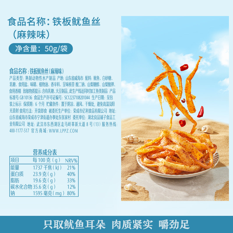 【满减专区】良品铺子铁板鱿鱼丝(麻辣味)50g海味零食休闲