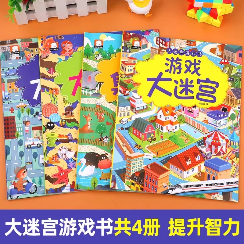迷宫书全4册 儿童迷宫益智专注力训练书 5-6岁走迷宫绘本大冒险书 3-4岁幼儿思维逻辑注意力训练书籍智力开发视觉3—6岁大迷宫游戏