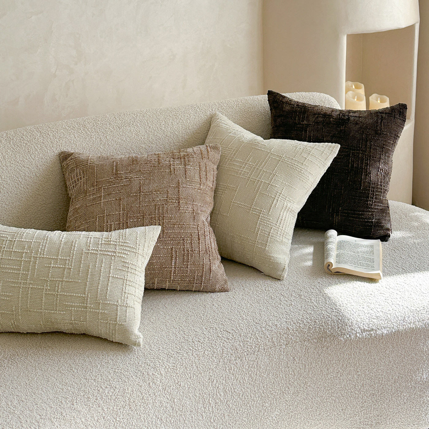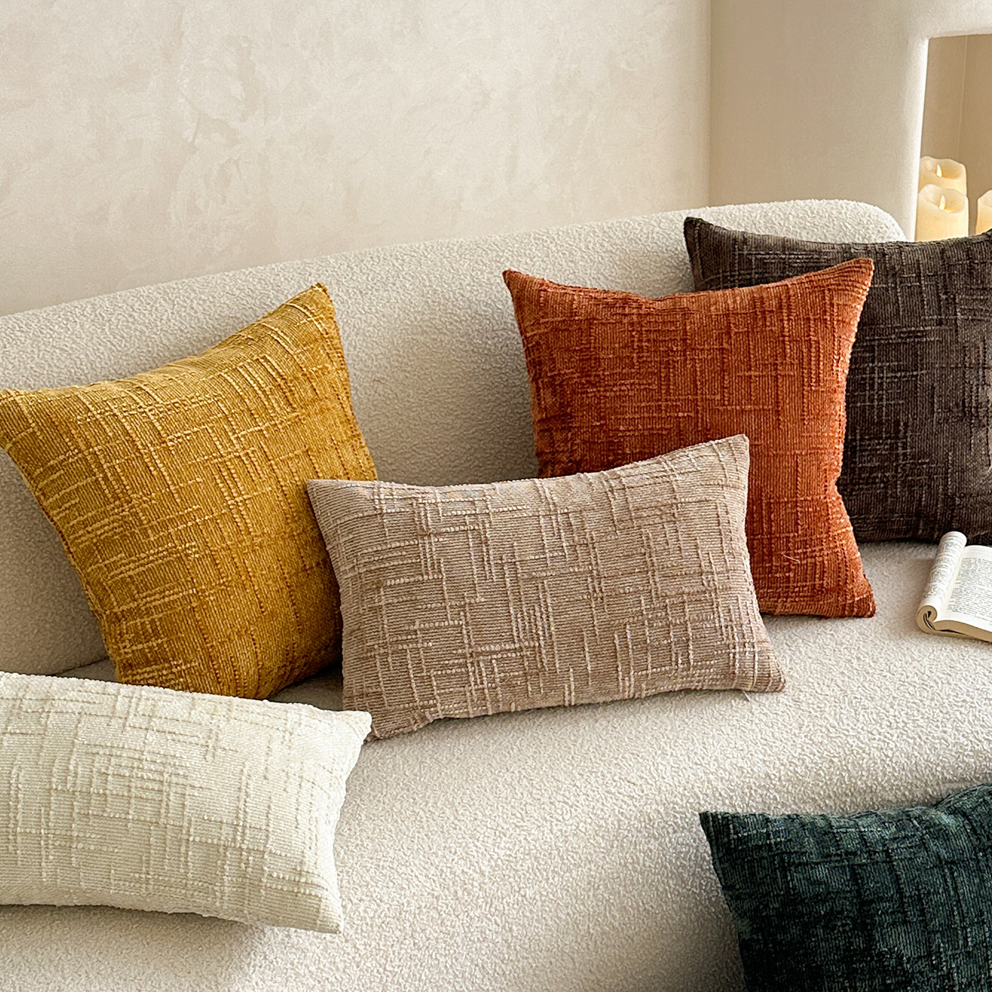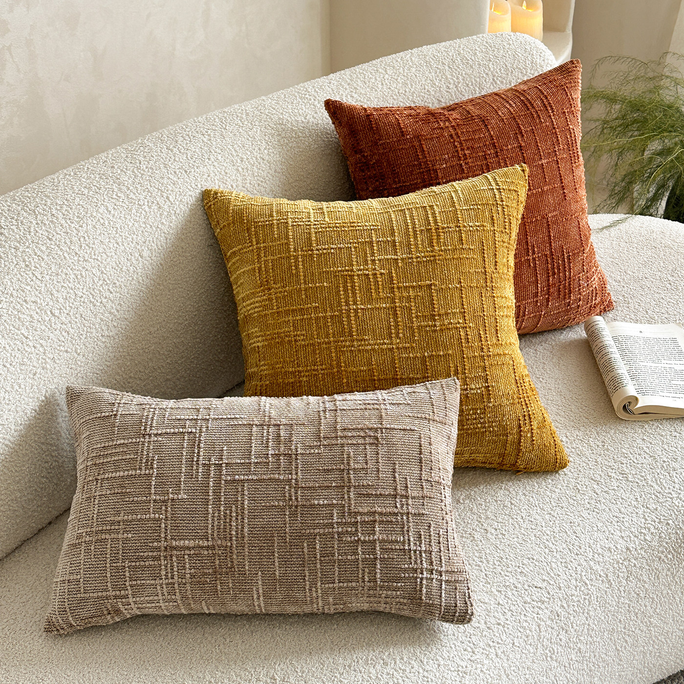 卧室飘窗靠垫竹节抱枕雪尼尔纯色百搭靠背特色工艺客厅沙发靠枕套