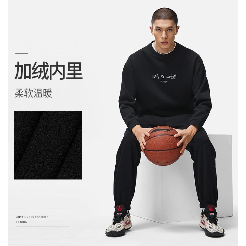 李宁外套春秋新款韦德系列男女同款加绒保暖宽松套头卫衣AWDT941