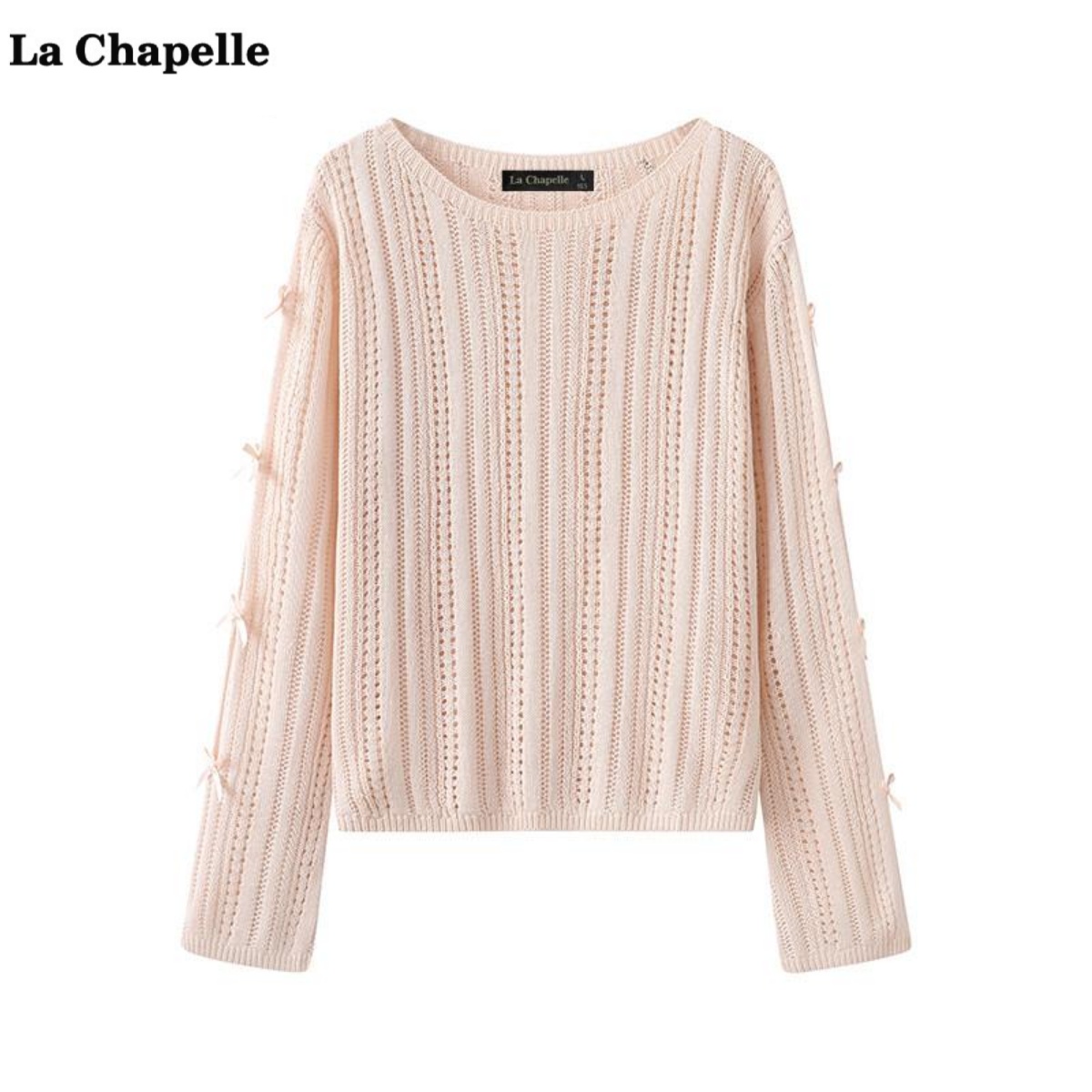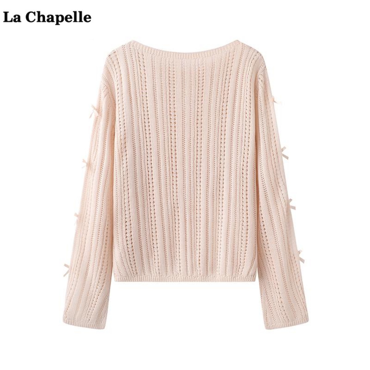 拉夏贝尔/La Chapelle蝴蝶结镂空针织衫女春季新款宽松气质上衣