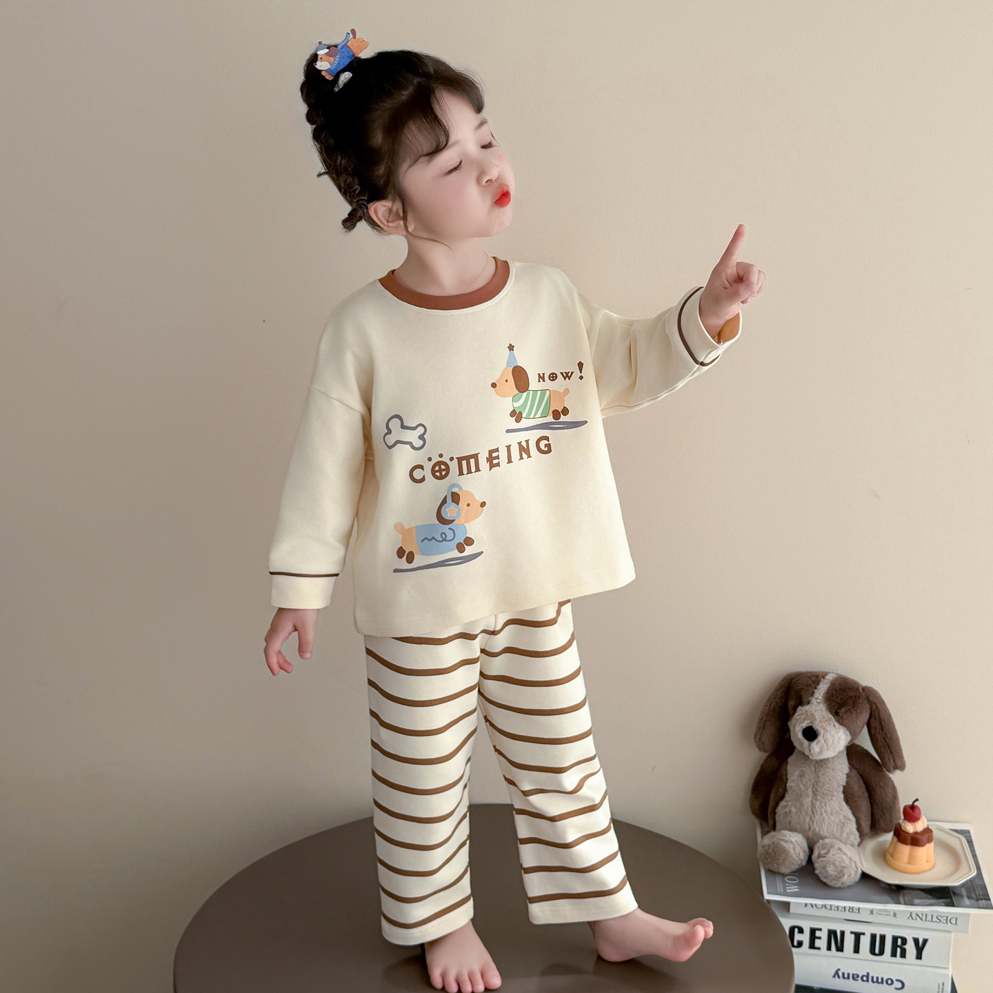 儿童睡衣春秋季长袖女童条纹家居服套装卡通可爱小狗2025年新款