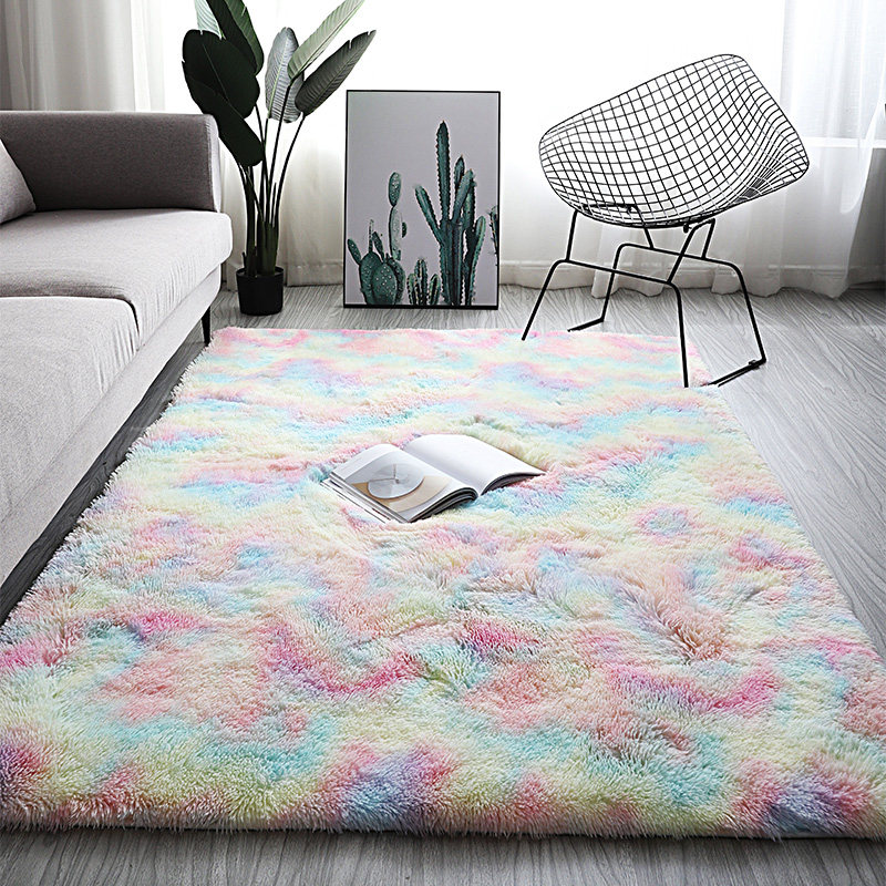 北欧ins杂色扎染渐变地毯客厅茶几垫网红长毛现代满铺卧室床边毯
