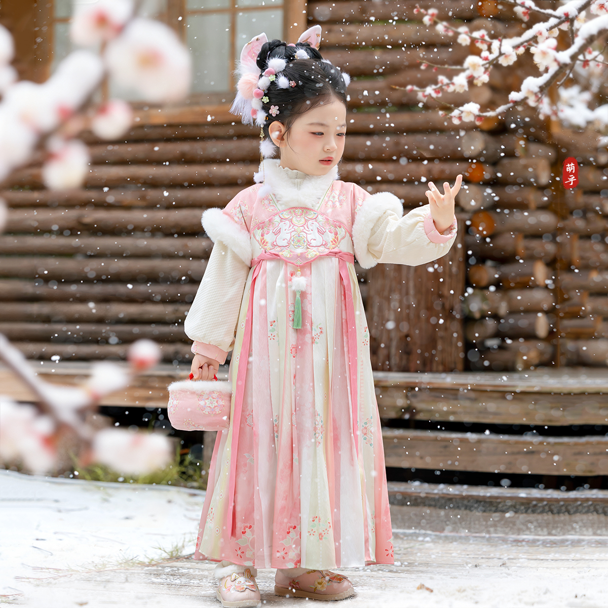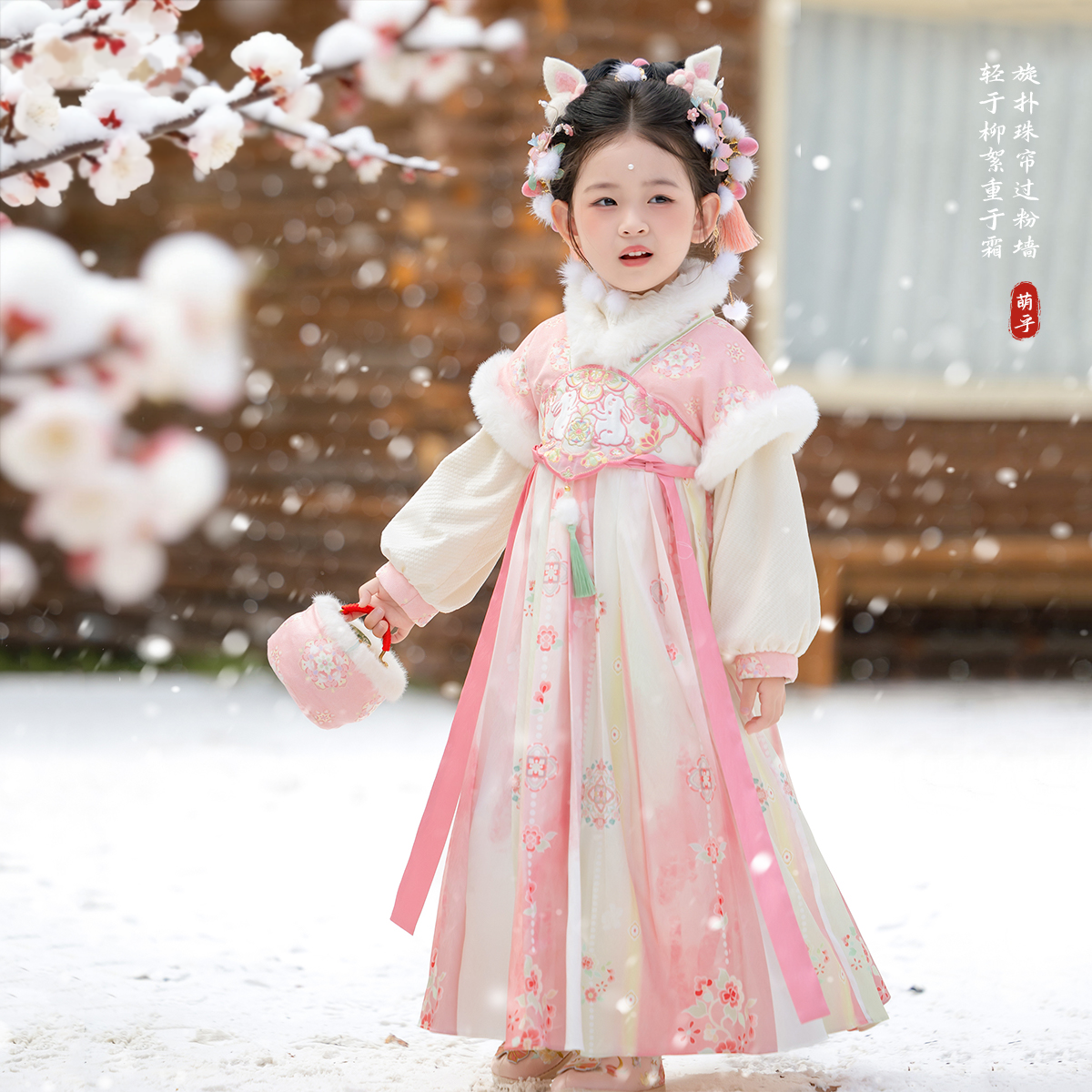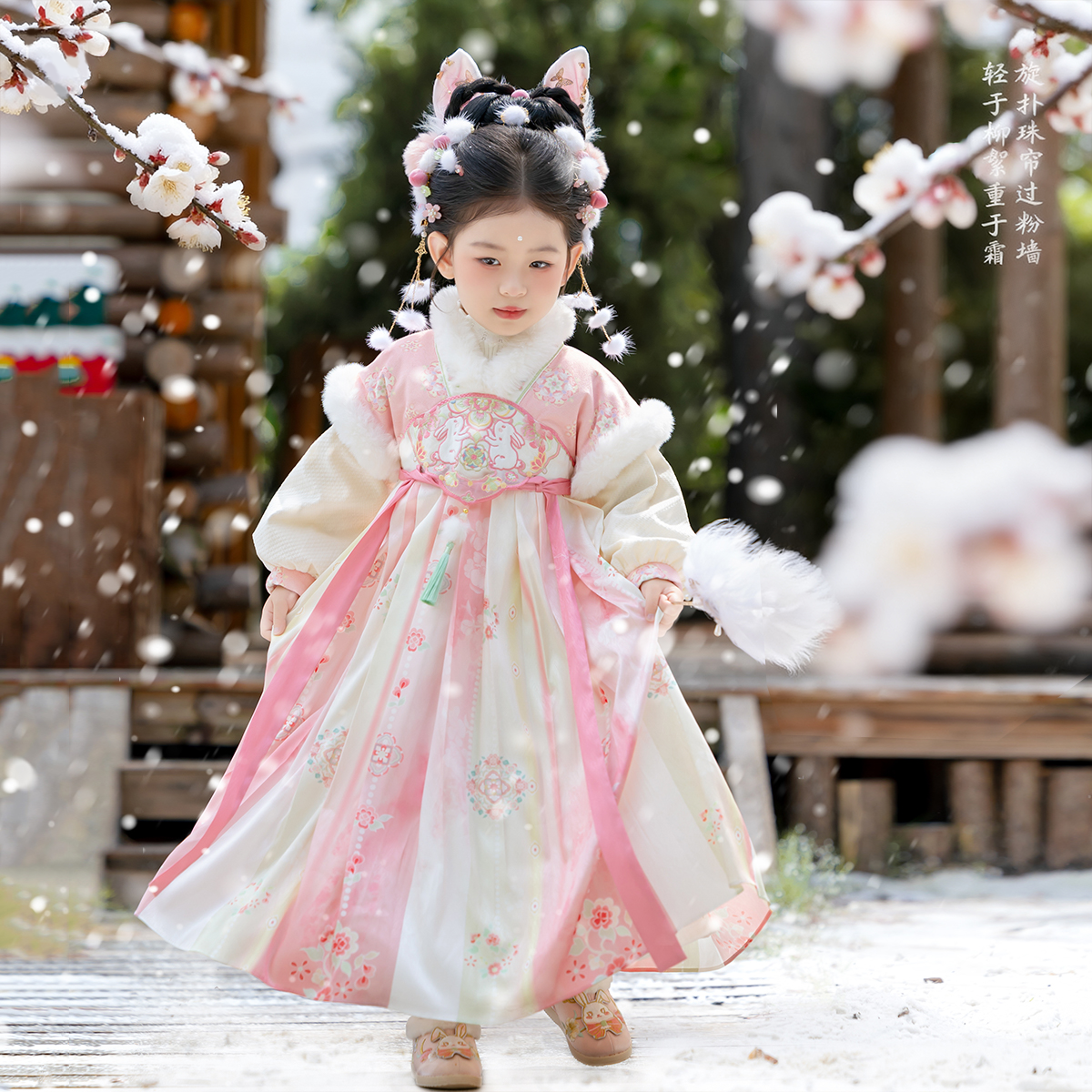 汉服女童冬款2025新款儿童高端仙气古风襦裙小女孩国风加绒连衣裙