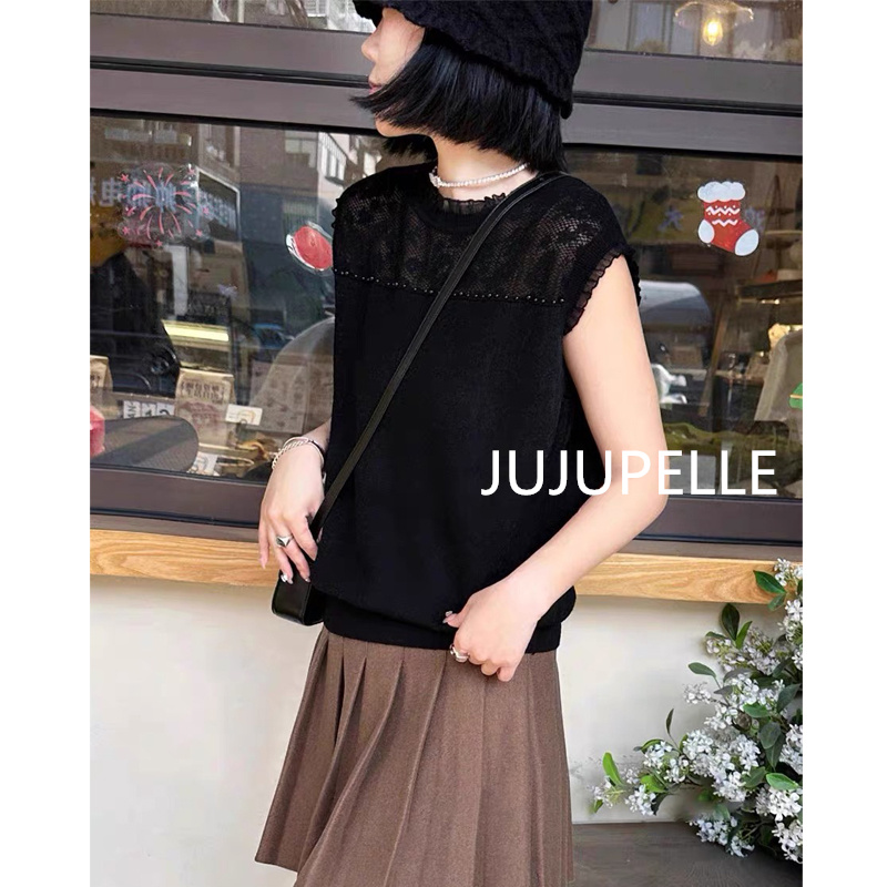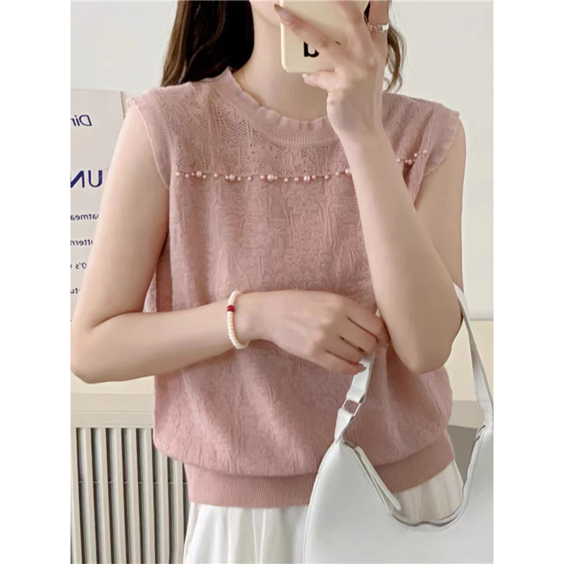 2025秋款气质百搭时尚针织无袖打底衫宽松女士洋气上衣蕾丝背心