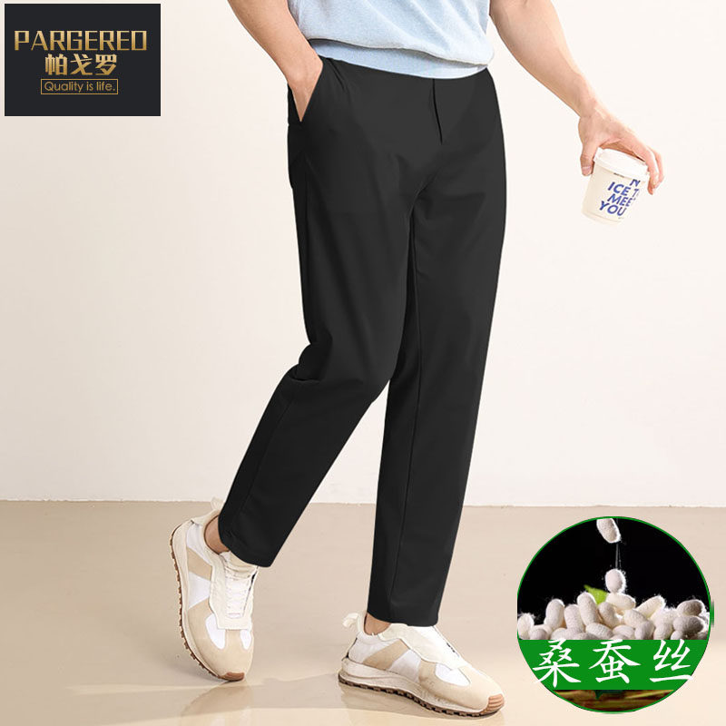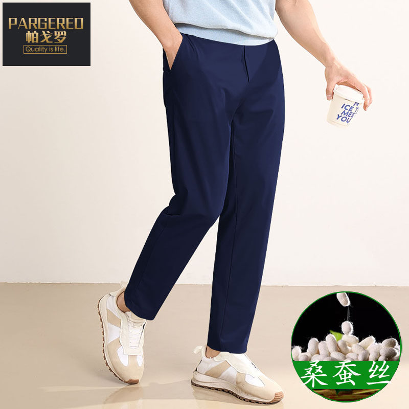 含桑蚕丝九分休闲裤男夏季薄款裤子修身小脚冰感免烫抗皱男小个子