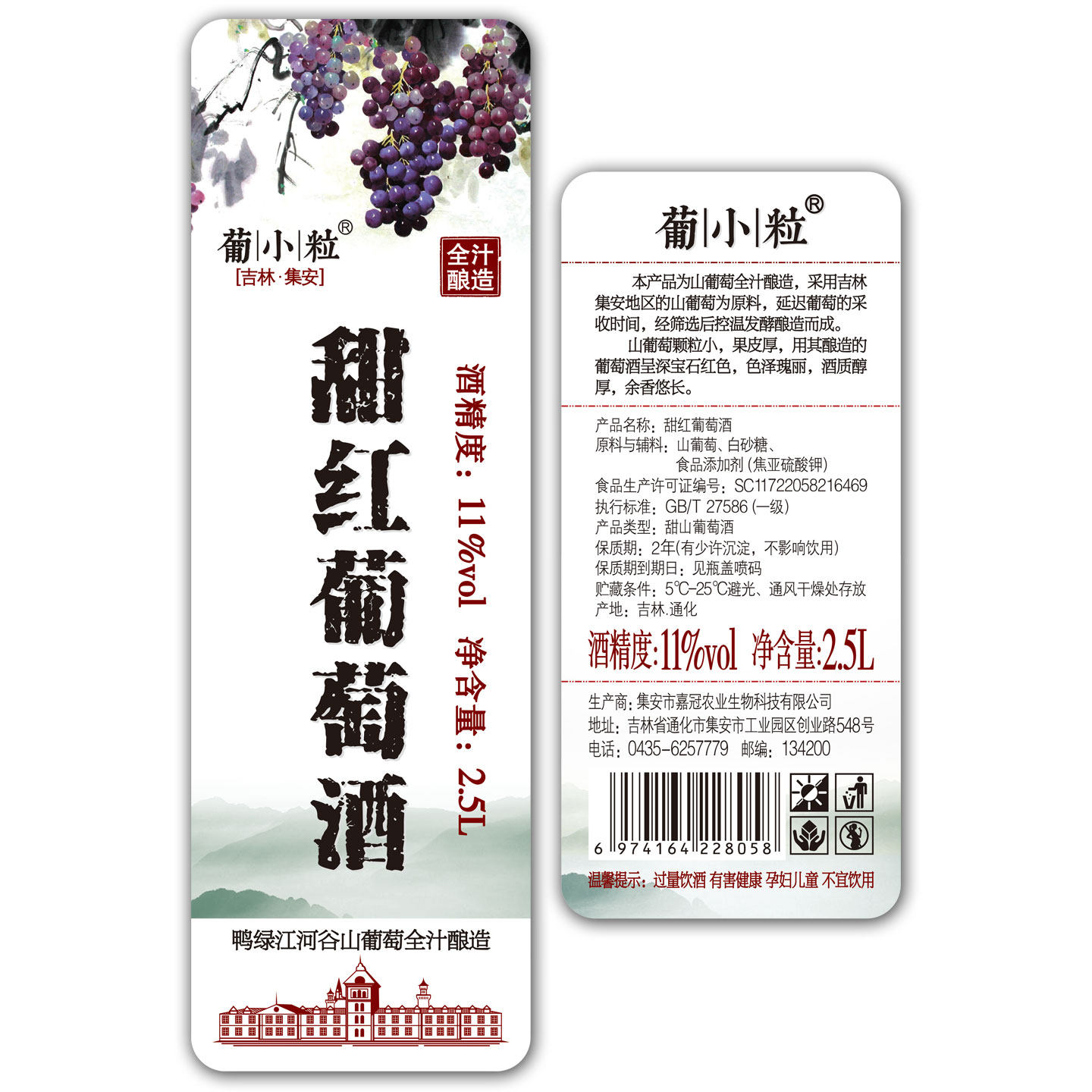 葡小粒 5斤桶装 自酿葡萄酒 女士甜酒甜型水果酒低度红酒山葡萄酒