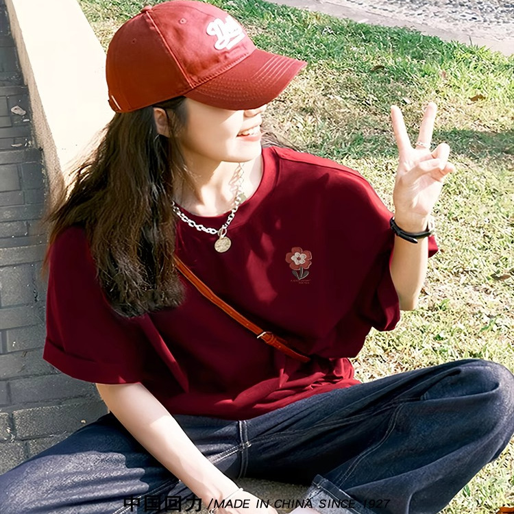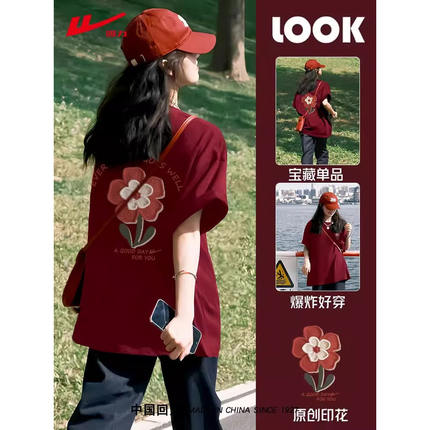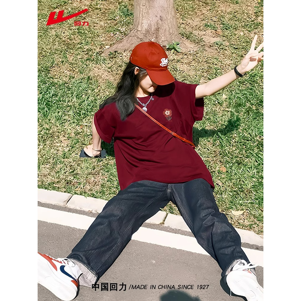 回力短袖t恤女夏季新款宽松大码休闲女学生半袖初高中生韩版上衣A