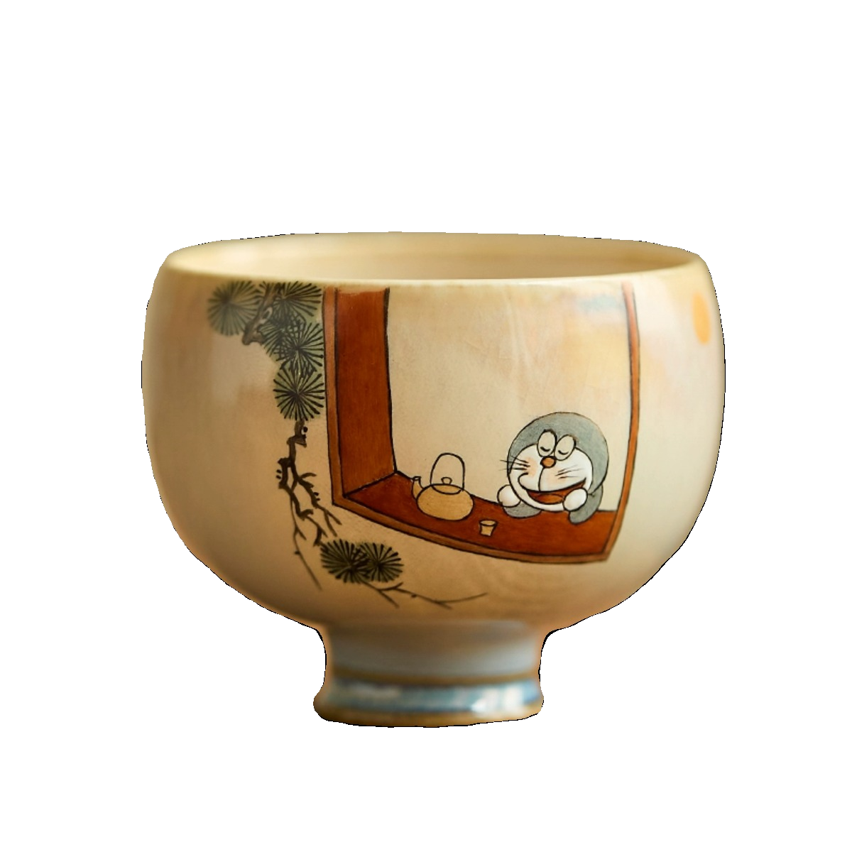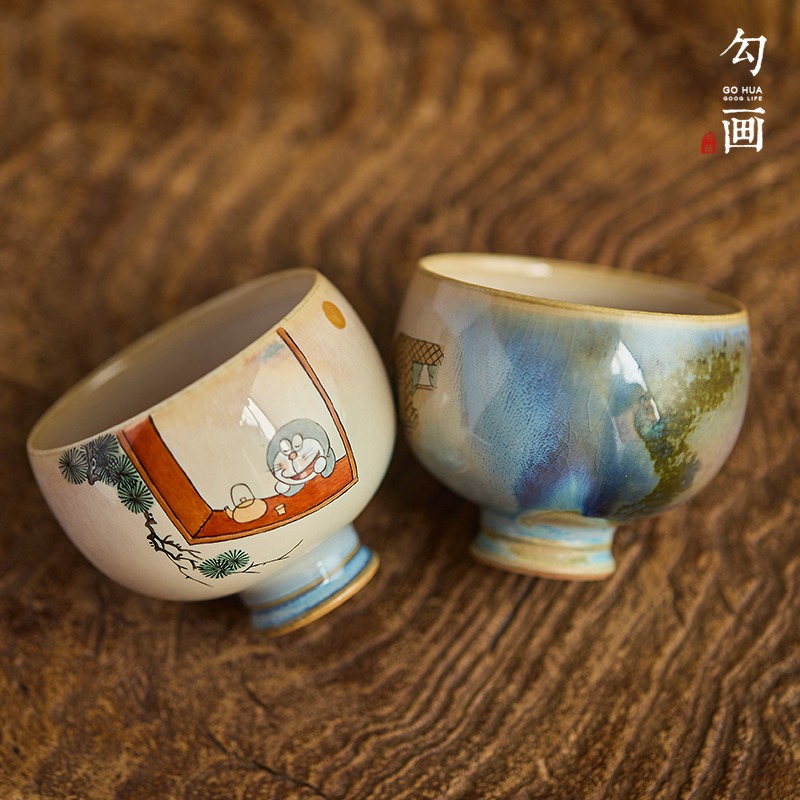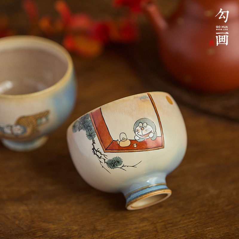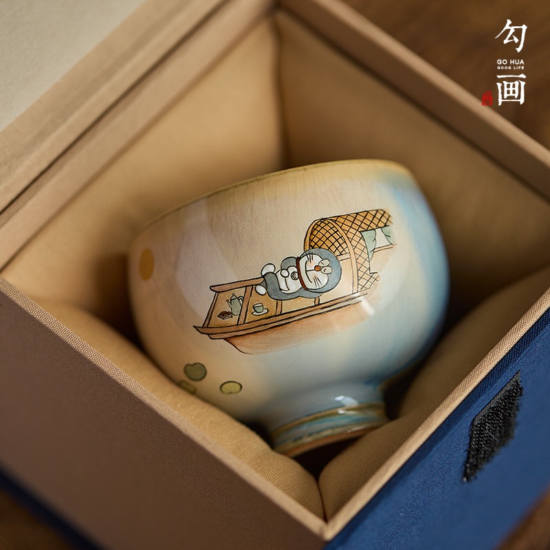 勾画 蓝胖子功夫茶杯主人杯景德镇陶瓷手绘机器猫卡通伴手礼单杯