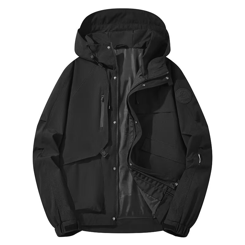 2025新款男款休闲连帽冲锋衣夹克男士春秋季宽松带帽拉链工装外套