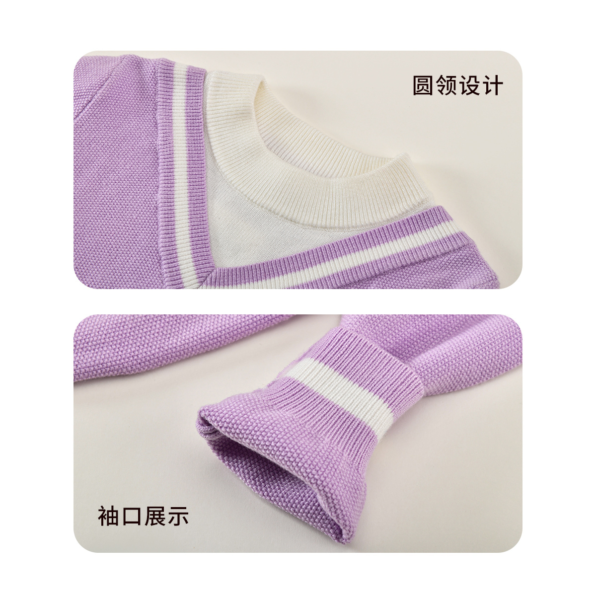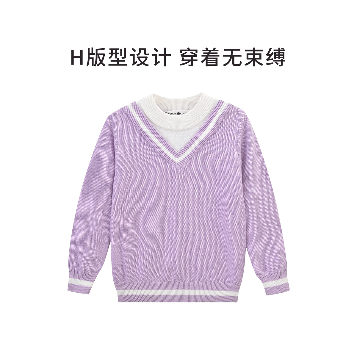 铅笔俱乐部2025秋装新款女童毛衣中大童假两件针织衫儿童圆领毛衫