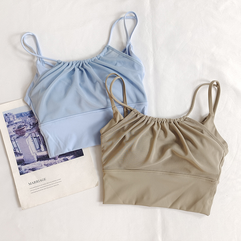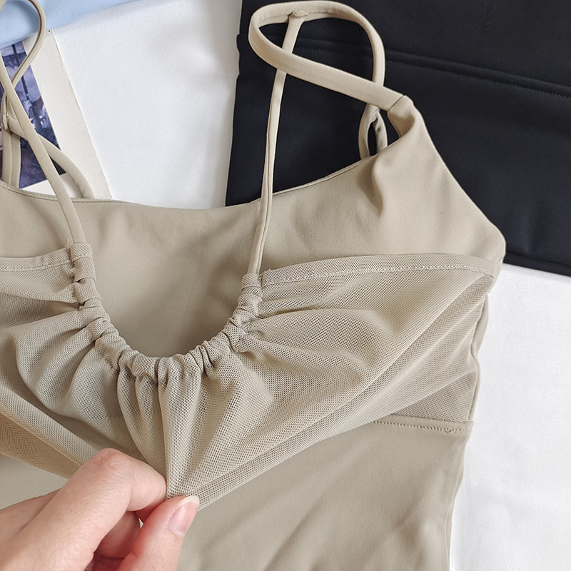 含胸垫性感运动内衣女普拉提网纱瑜伽背心假两件跑步防震聚拢文胸