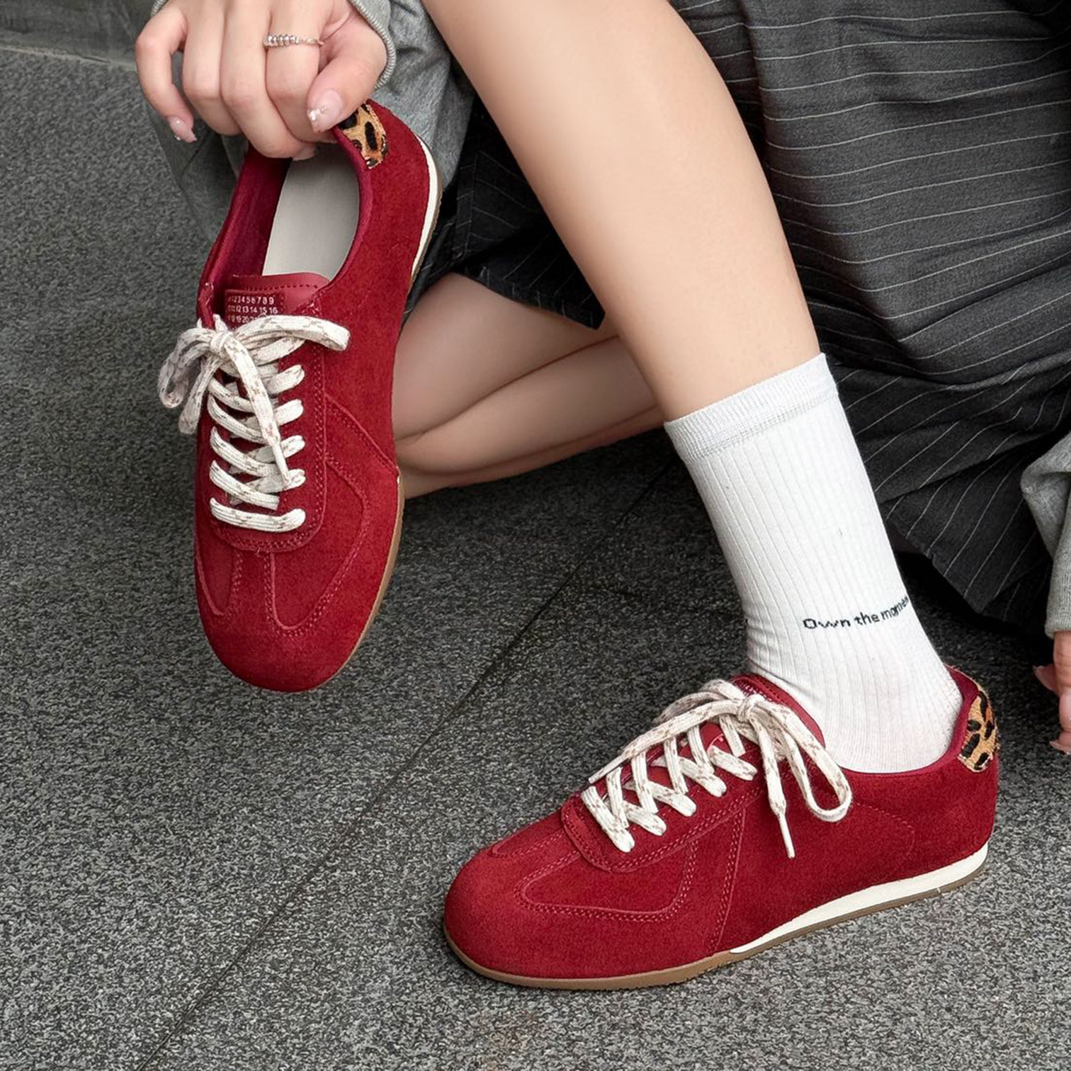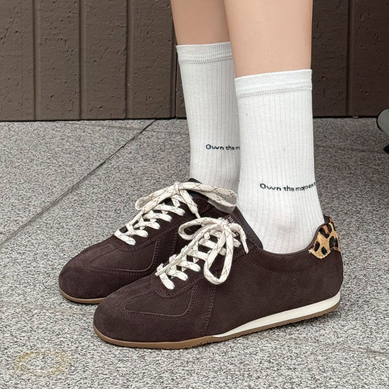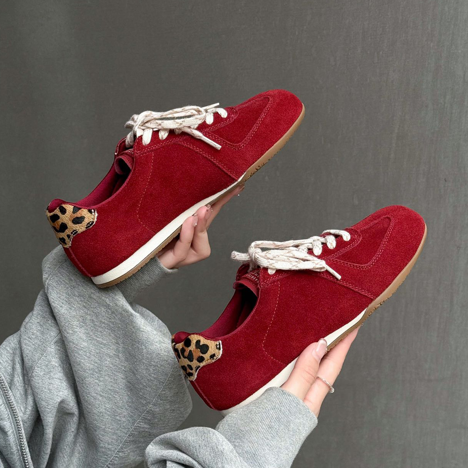 磨砂皮内增高德训鞋女2025新款秋季板鞋百搭复古风豹纹户外休闲鞋