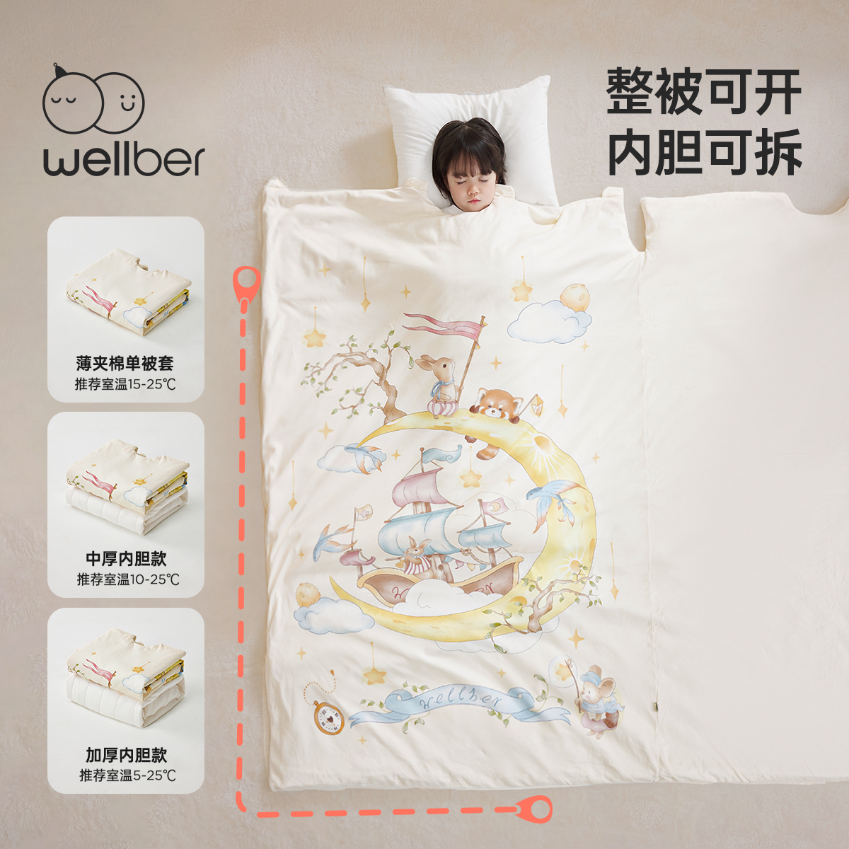 威尔贝鲁儿童防踢被子四季通用恒温一体式中大童宝宝睡袋保暖被式