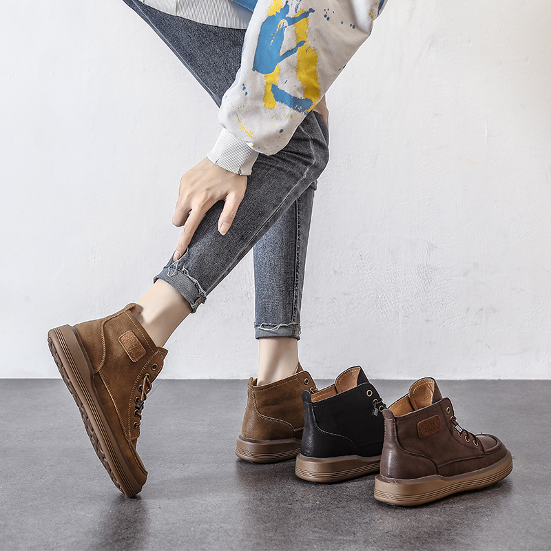 牛皮复古棕色马丁靴女秋款2022新款英伦风短靴牛筋底真皮春秋女靴