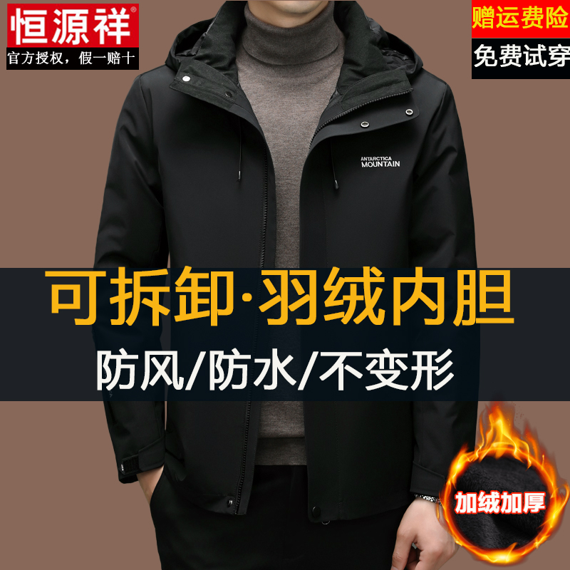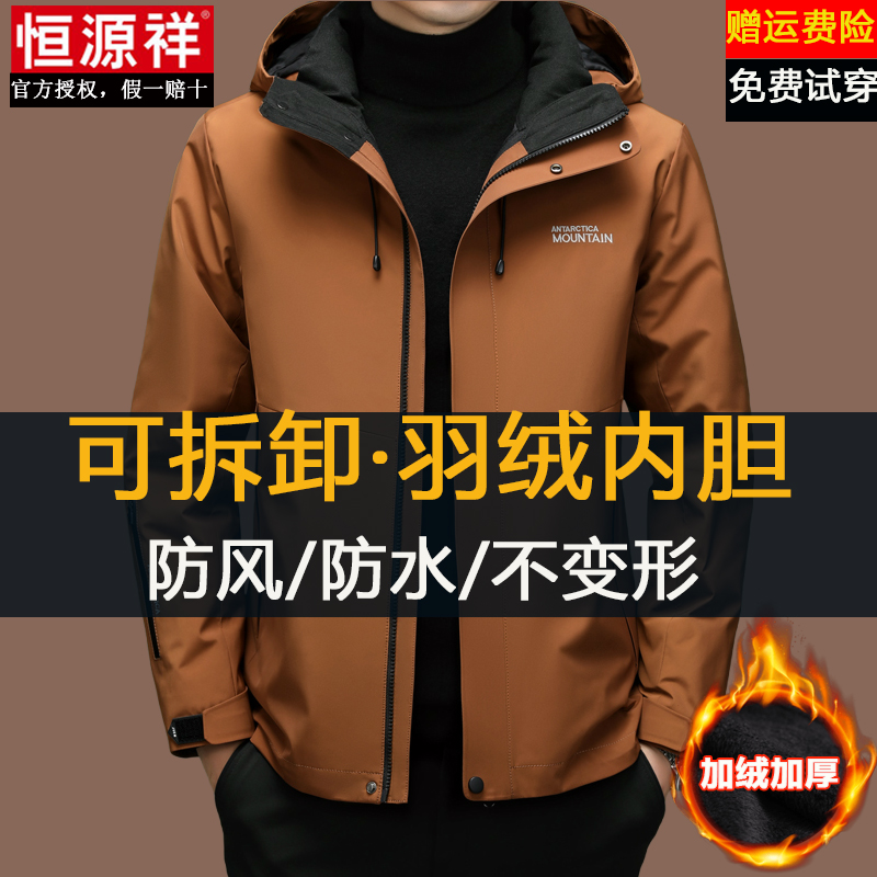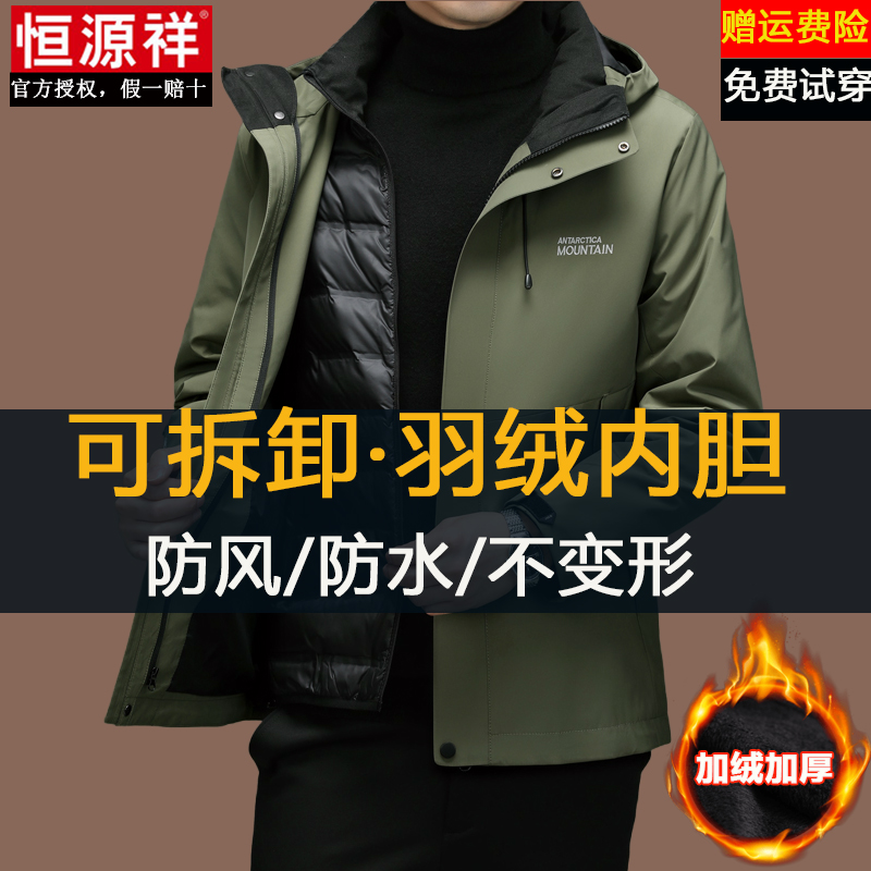 恒源祥冲锋衣男款羽绒服内胆可脱卸三合一秋冬季加厚保暖防风外套