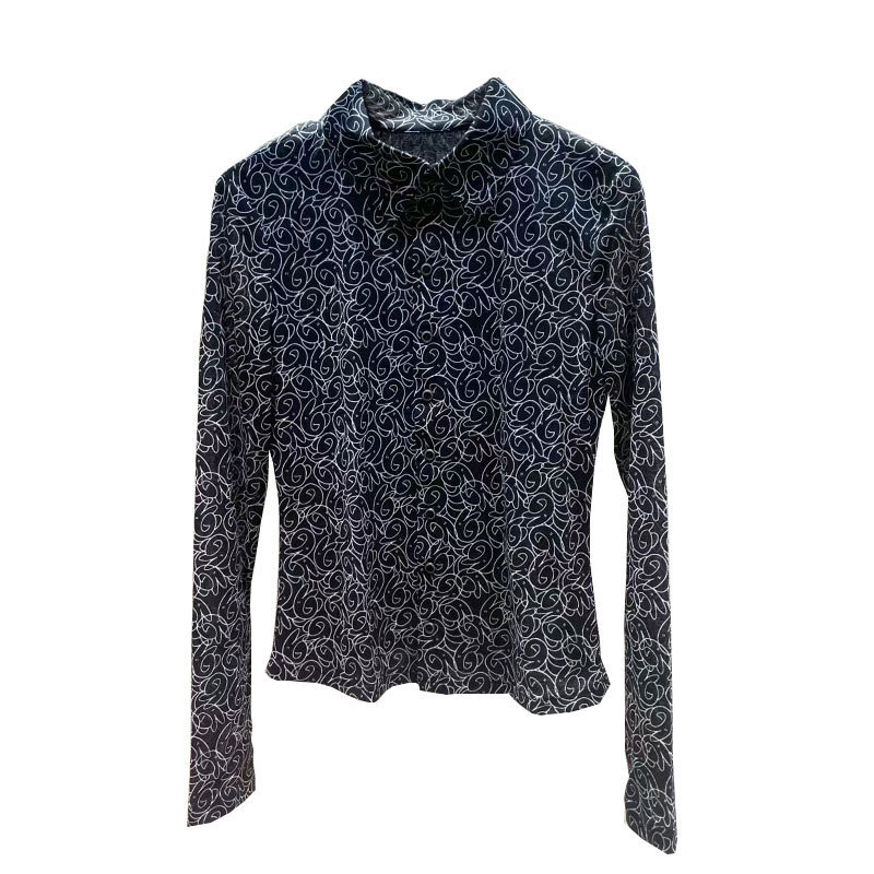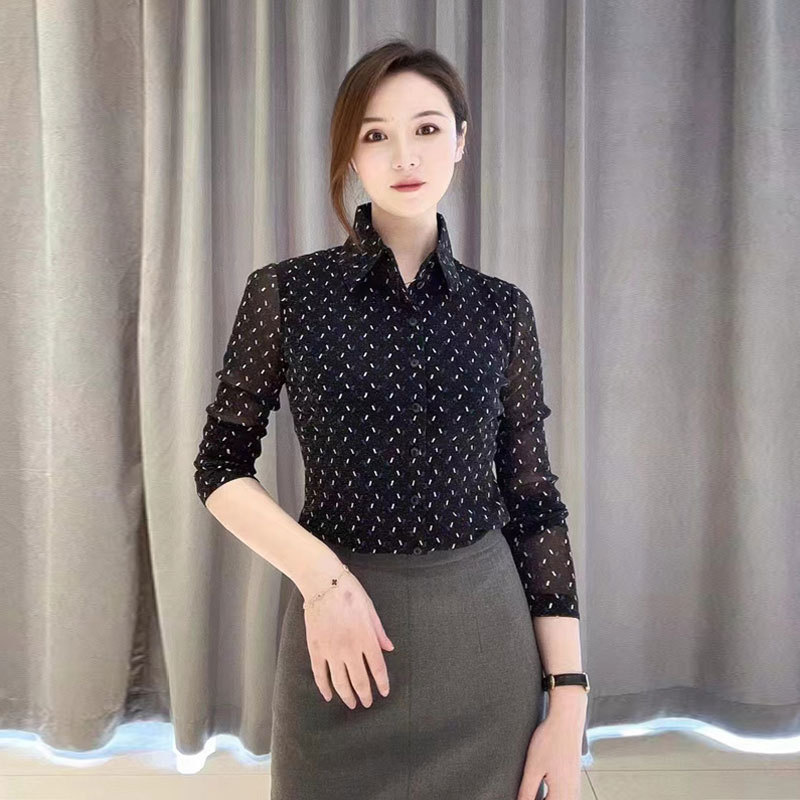 2025女装春秋新款女装显瘦弹力印花网纱长袖衬衫