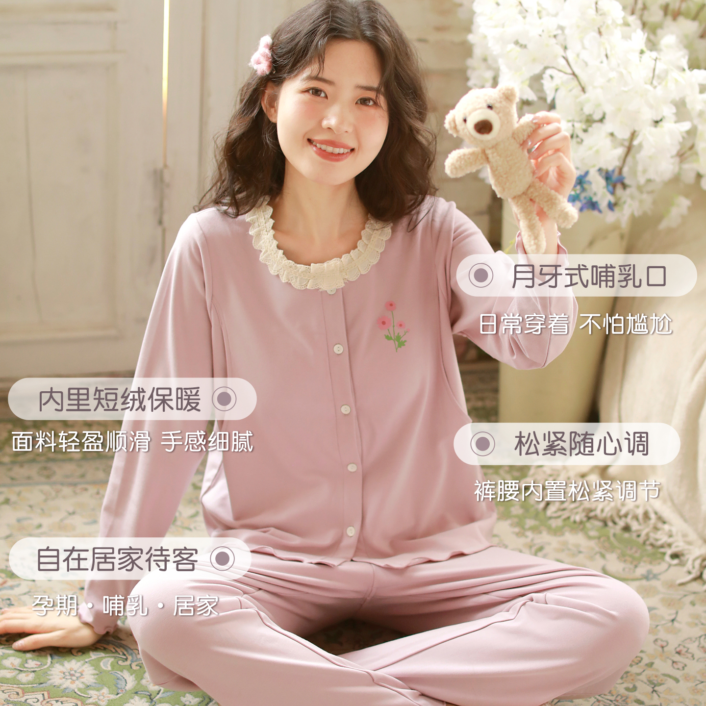 带胸垫 富朵月子服春秋产后喂奶衣孕妇打底睡衣冬季保暖内衣套装