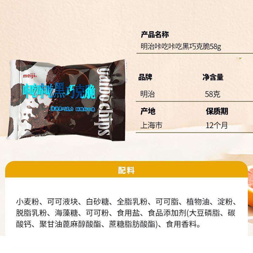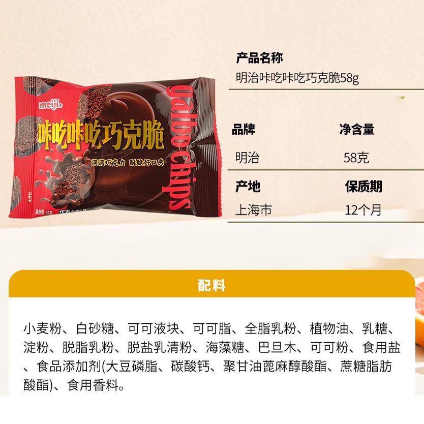 【新品】meiji明治咔吃咔吃巧克脆58g袋装巧克力饼干推荐小零食