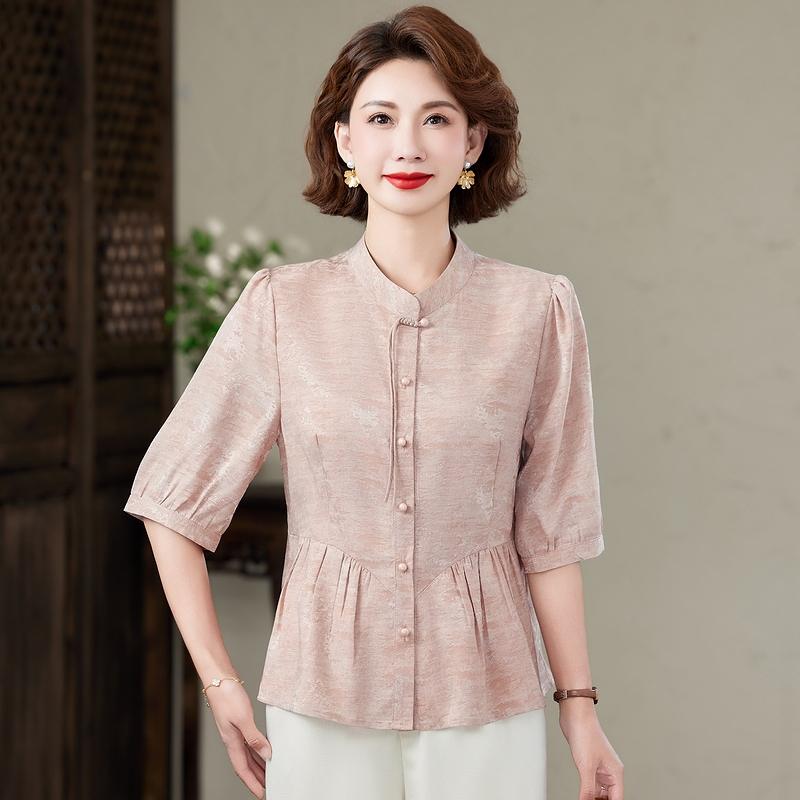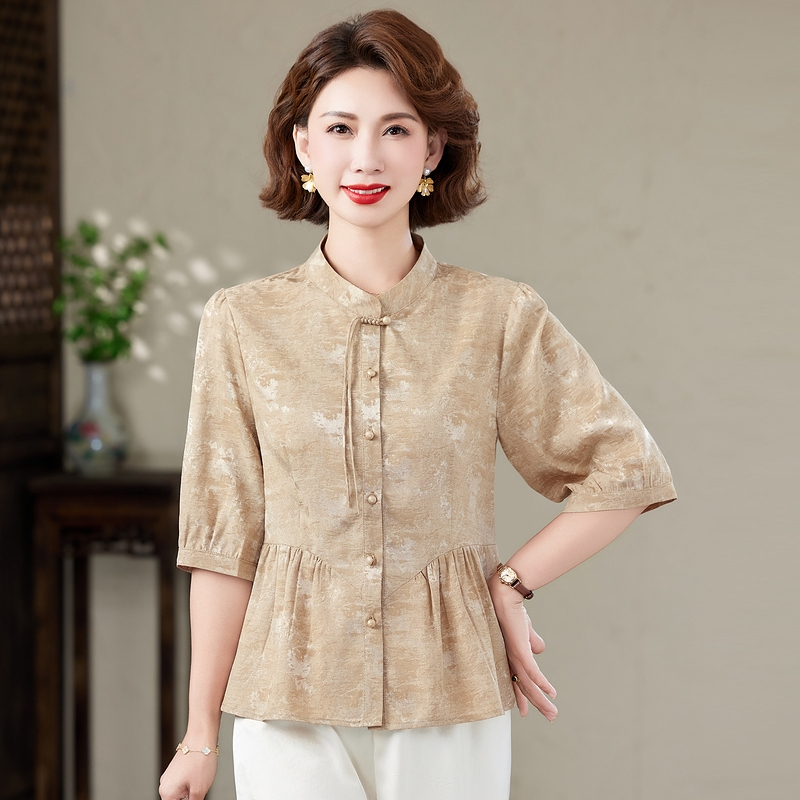 妈妈夏装2025新款短袖雪纺衬衫气质小衫中老年女装夏季T恤薄上衣