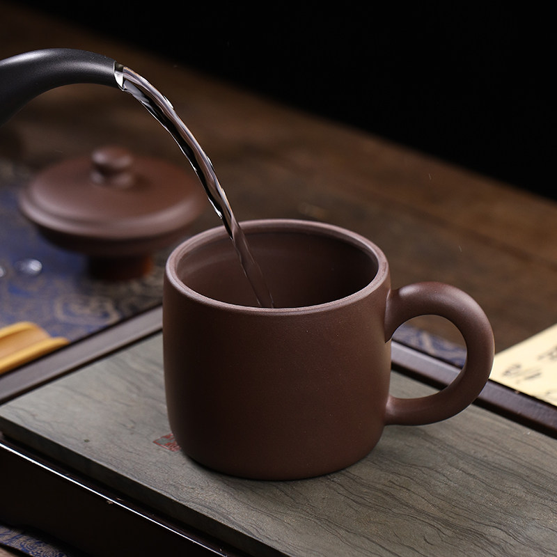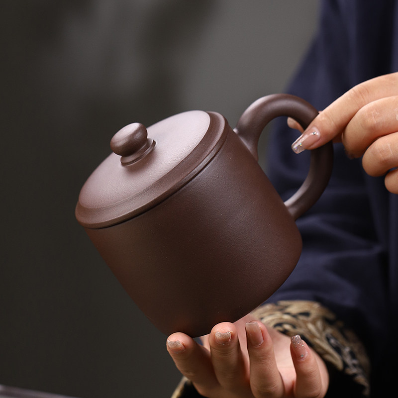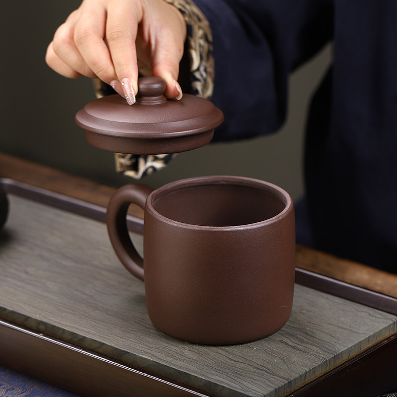 宜兴紫砂杯大容量带盖加厚中式家用茶杯盖泡茶水杯紫泥办公杯茶具