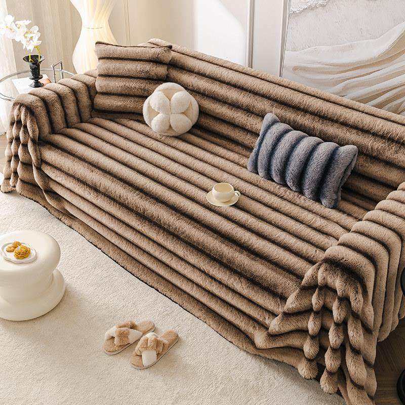 轻奢兔毛绒沙发垫冬季加厚防滑2024新款秋冬坐垫子皮沙发套罩盖布