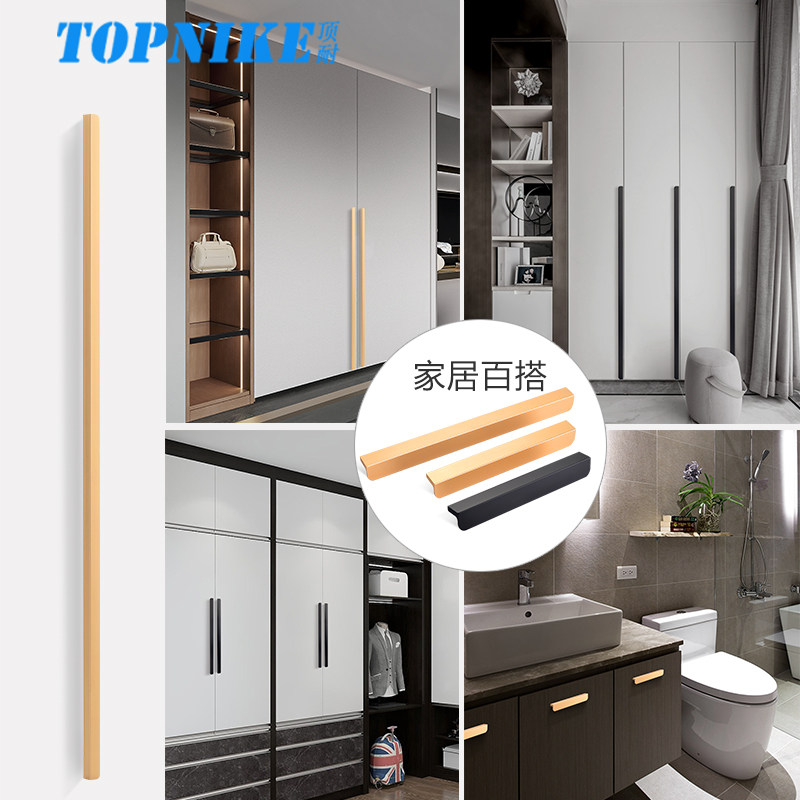 顶耐衣柜门拉手厨房橱柜门抽屉柜子长条把手L型香槟金黑色铝合金