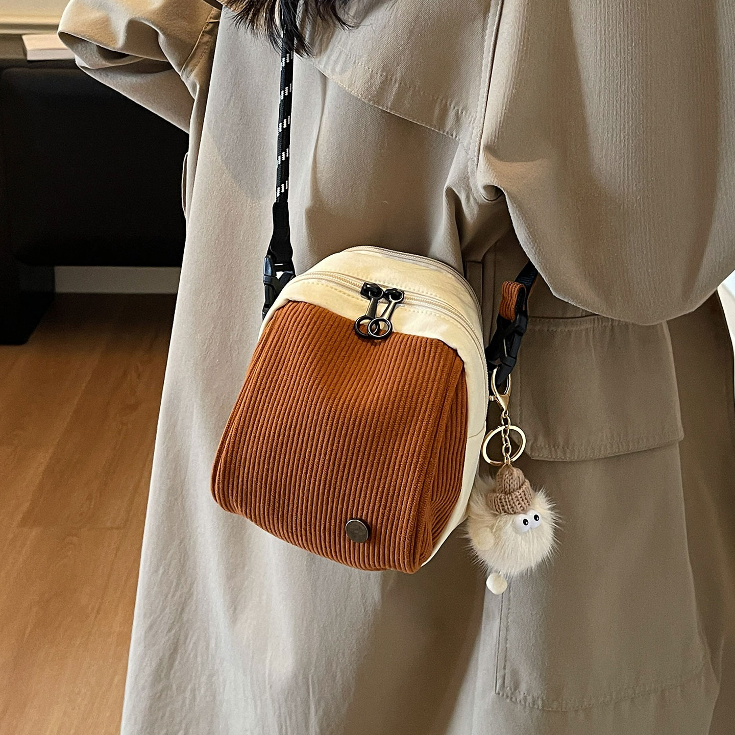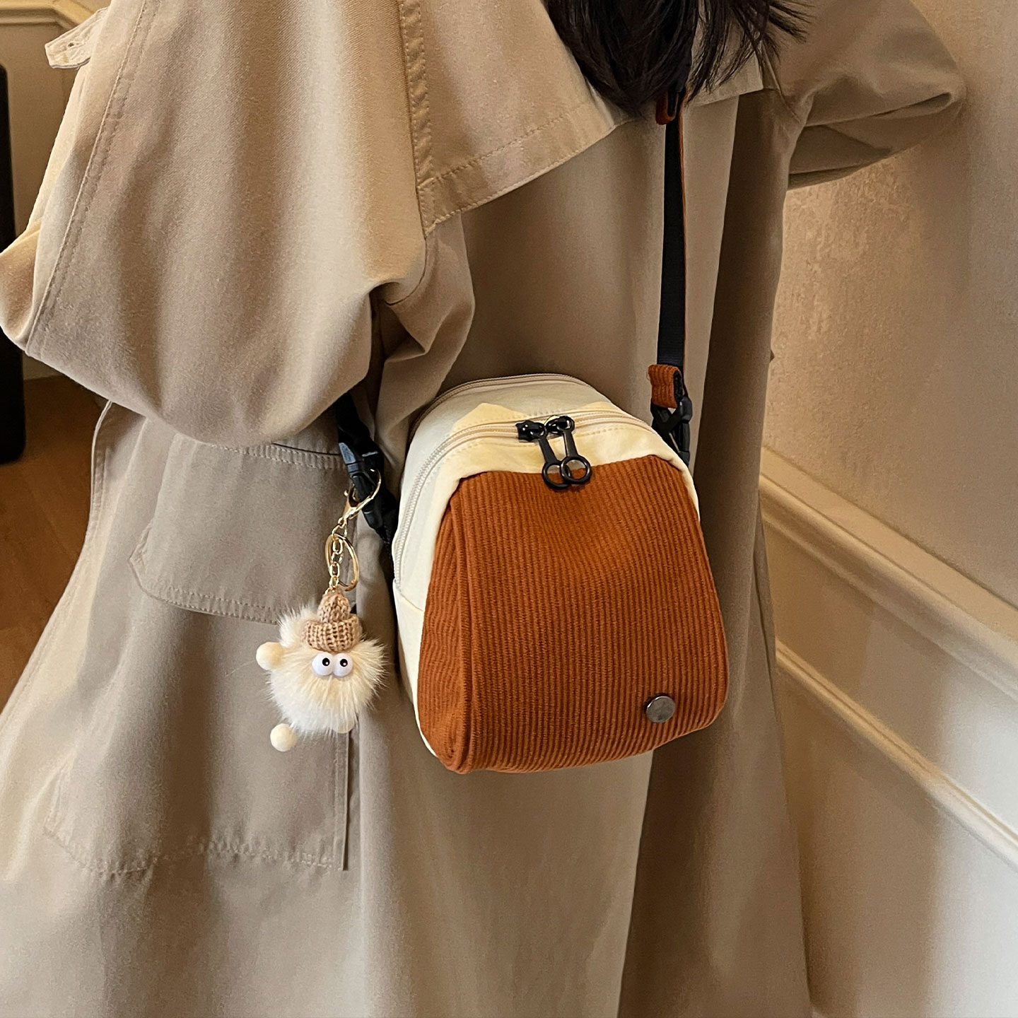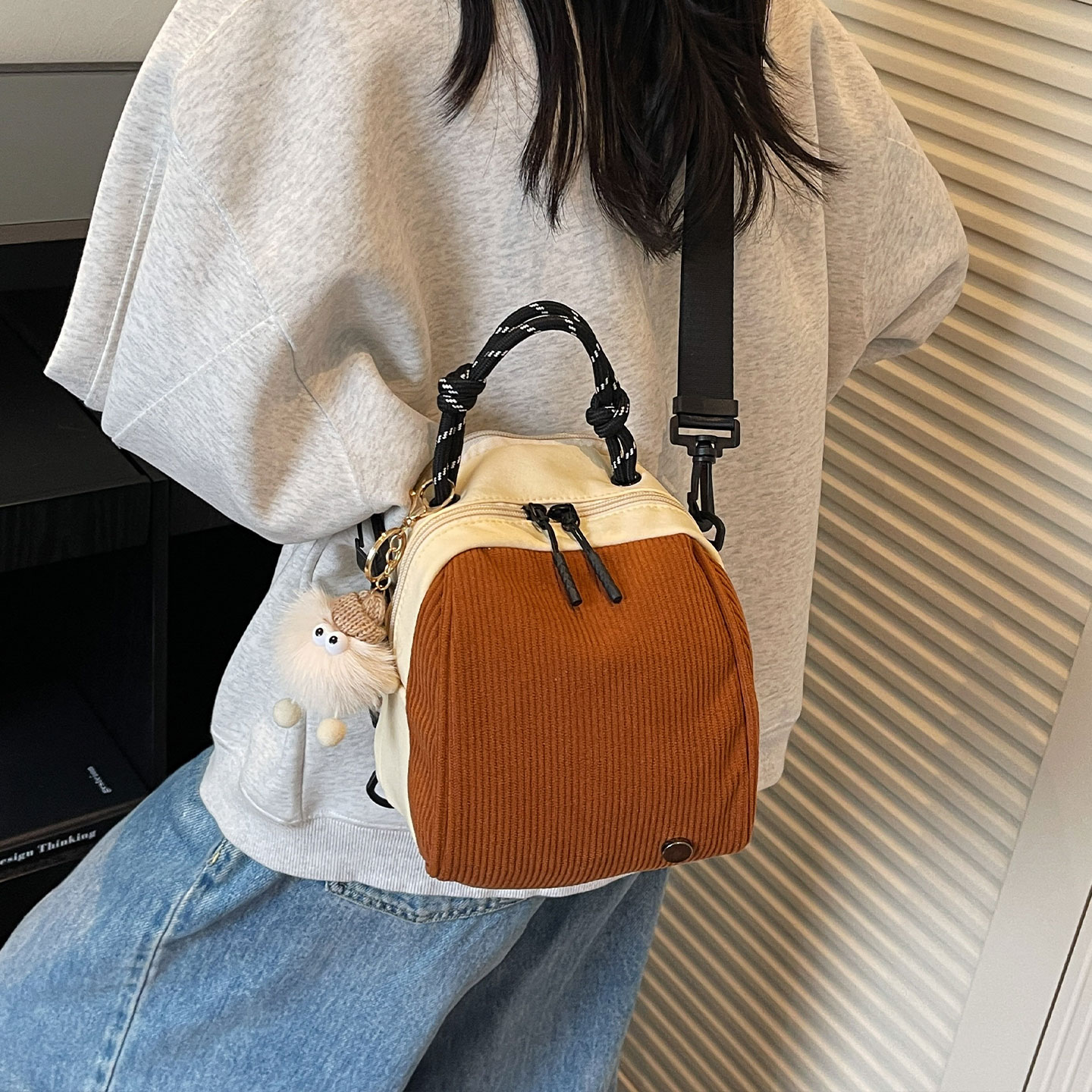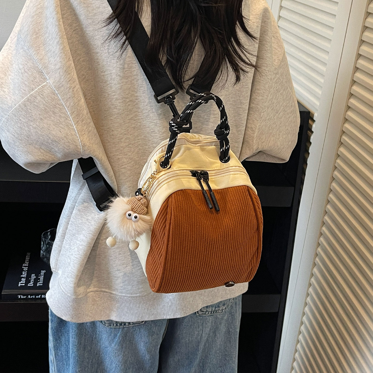 条绒休闲斜挎包女2025新款秋冬时尚多功能双肩背包百搭单肩通勤包